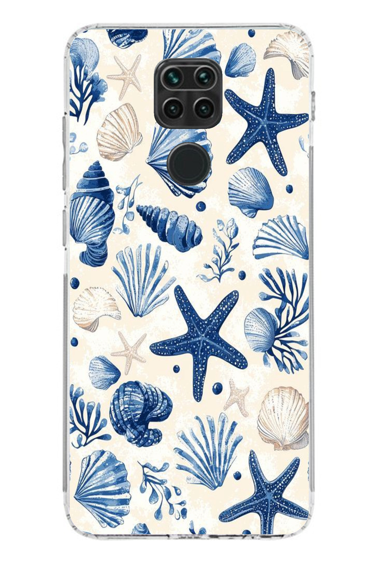 ميزات حافظة سيليكون مطبوع متوافقة مع هاتف Redmi Note 9 بنمط صدفة البحر الزرقاء والنجمة من TechTree