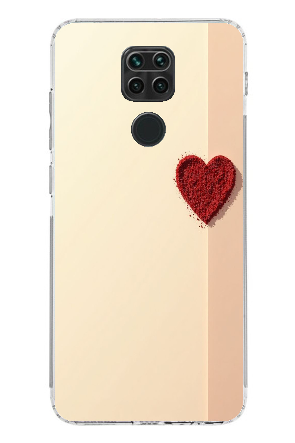 ميزات حافظة سيليكون متوافقة مع هاتف Redmi Note 9 ذات خلفية كريمية وقلب أحمر مطبوع من TechTree