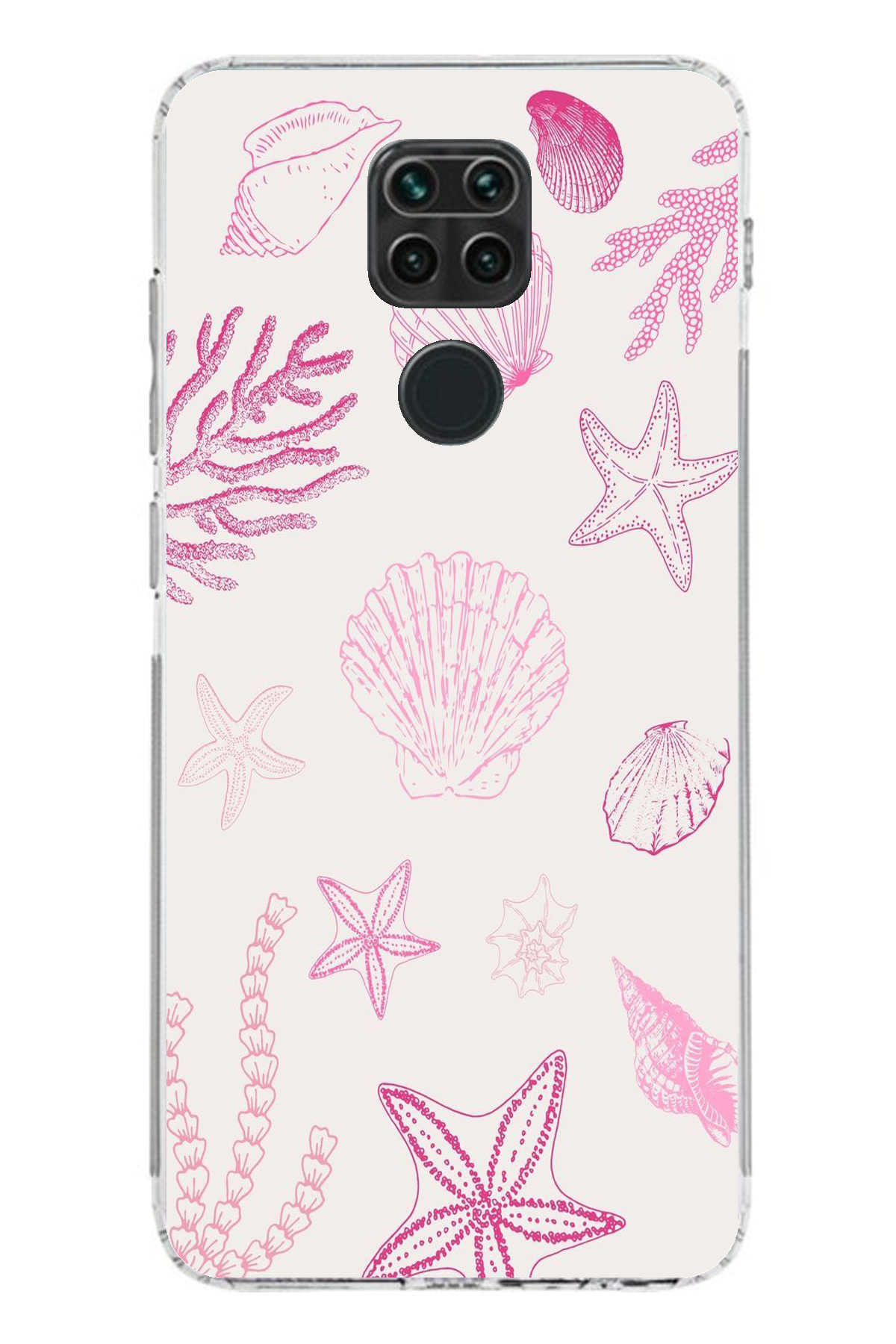 ميزات حافظة سيليكون متوافقة مع هاتف Redmi Note 9 باللون الوردي وStarfish and Shell مطبوع من TechTree