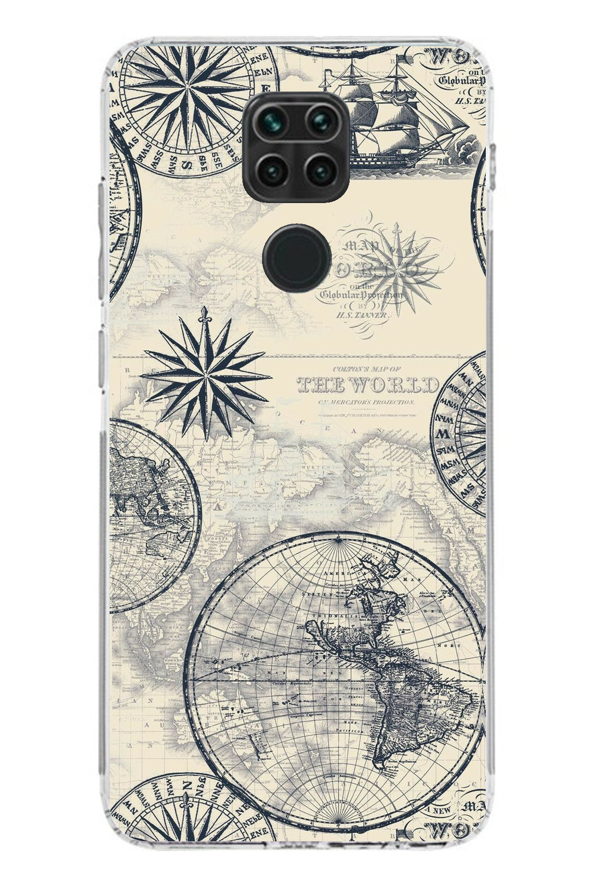 ميزات حافظة سيليكون متوافقة مع هاتف Redmi Note 9 وقديمة الطراز تحتوي على خريطة العالم والبوصلة مطبوع من TechTree
