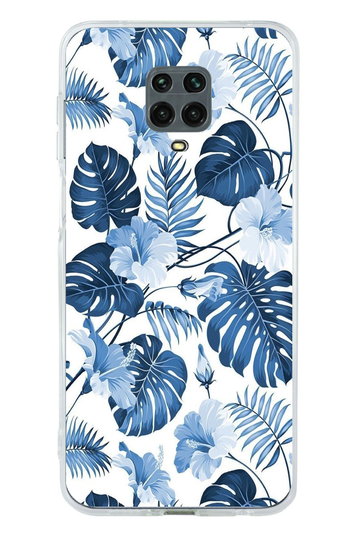 ميزات حافظة سيليكون مطبوع متوافقة مع Redmi Note 9 PRO-9S بنمط أوراق الشجر الزرقاء والزهور من TechTree