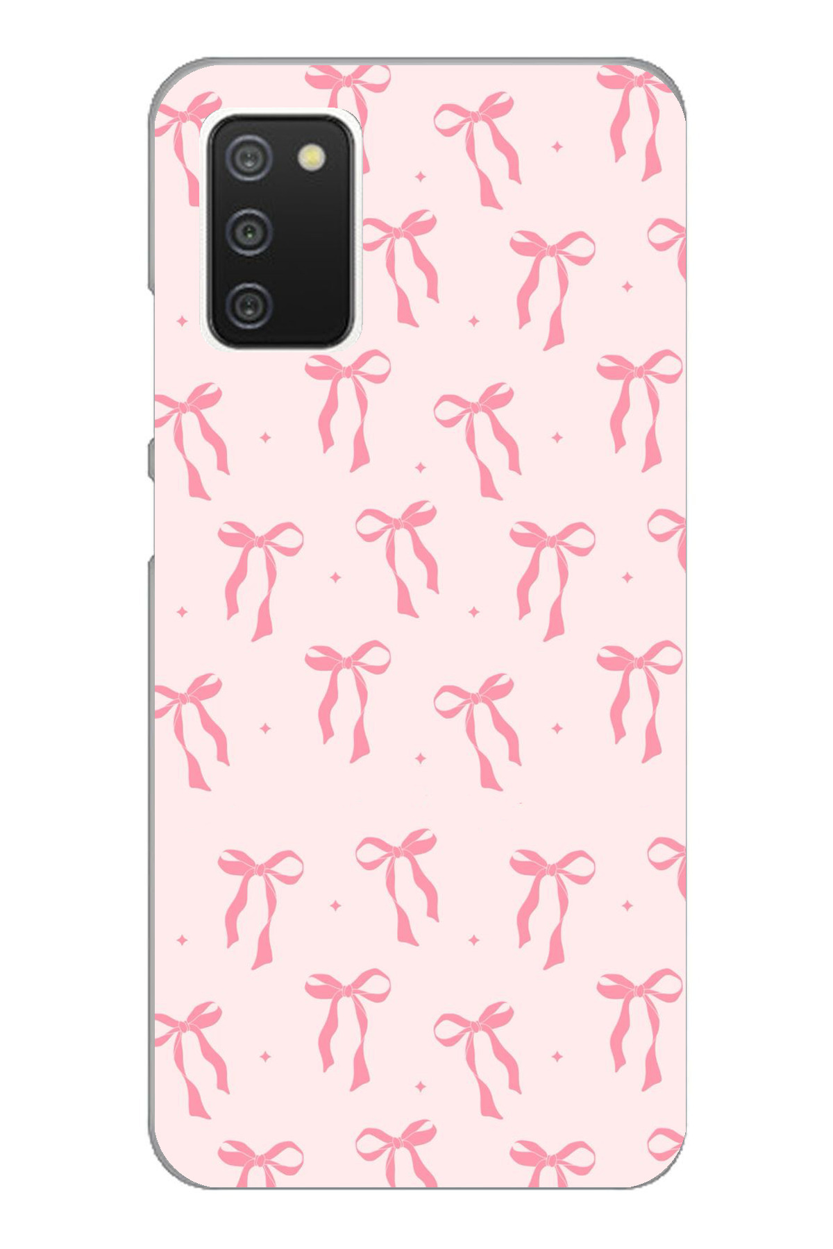 ميزات حافظة سيليكون مطبوع متوافقة مع هاتف سامسونج جالاكسي A02S بنمط فيونكة وردية ناعمة من TechTree