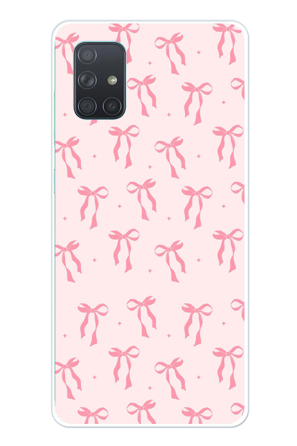 ميزات حافظة سيليكون ناعمة متوافقة مع هاتف سامسونج جالاكسي A71 بنمط فيونكة وردية مطبوع من TechTree