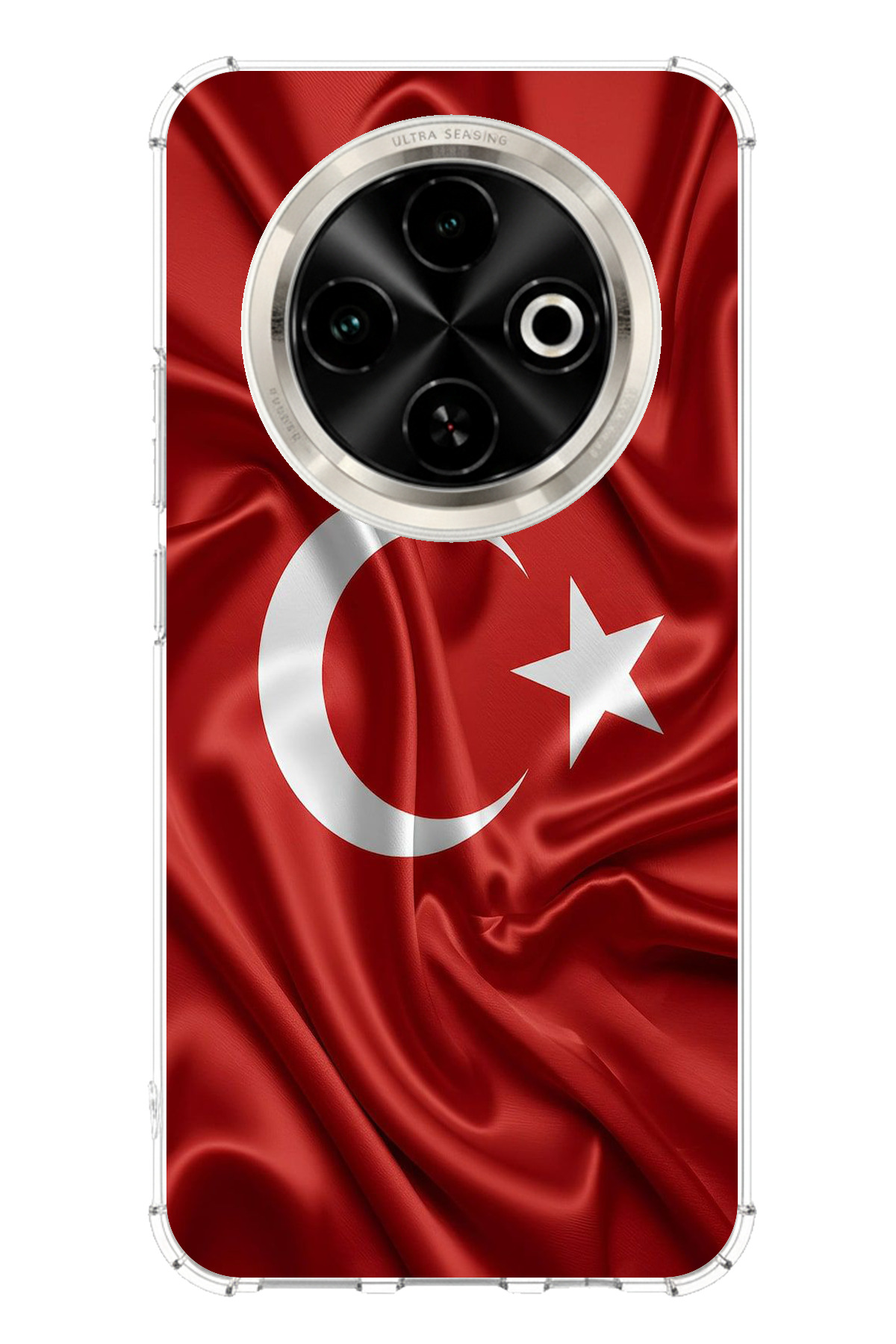 TechTree حافظة سيليكون متوافقة مع هاتف Tecno Spark 30C بعلم تركيا مطبوع