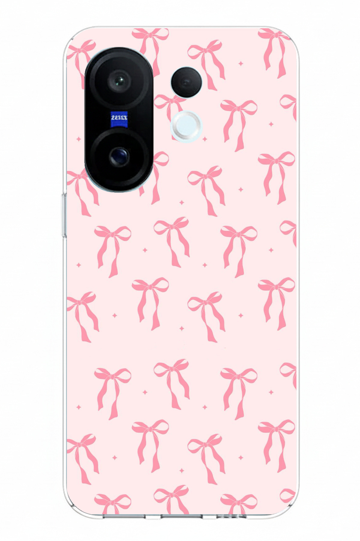 ميزات حافظة سيليكون مطبوع متوافقة مع Vivo X200 FE بنمط فيونكة وردية ناعمة من TechTree