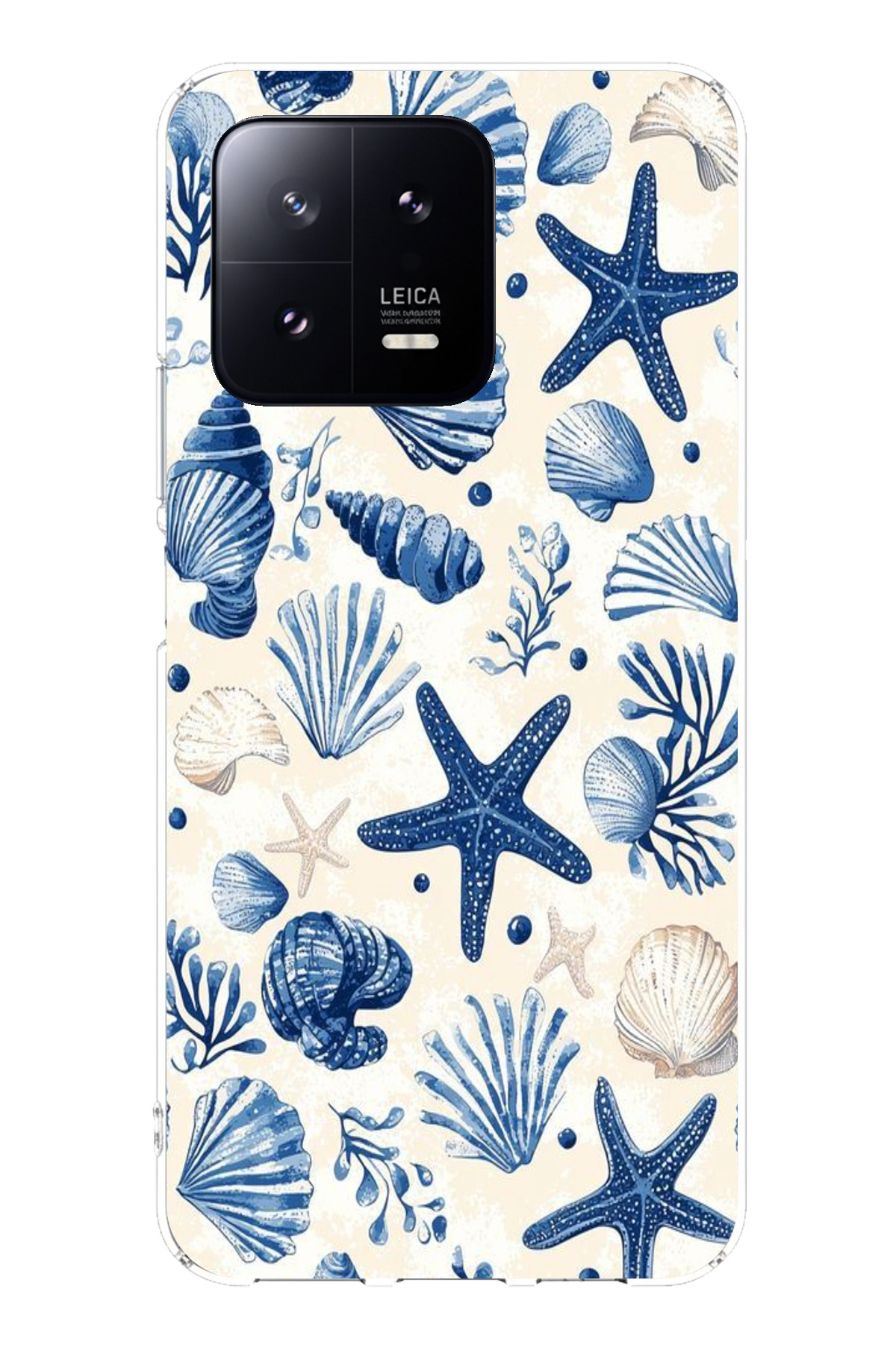 TechTree حافظة سيليكون مطبوع متوافقة مع هاتف Xiaomi Mi 13 بنمط صدفة البحر الزرقاء والنجمة