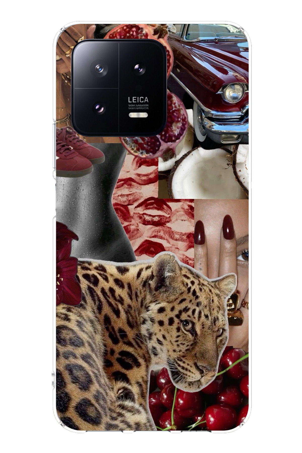 ميزات حافظة سيليكون متوافقة مع هاتف Xiaomi Mi 13 باللون الأحمر الفهد مطبوع من TechTree