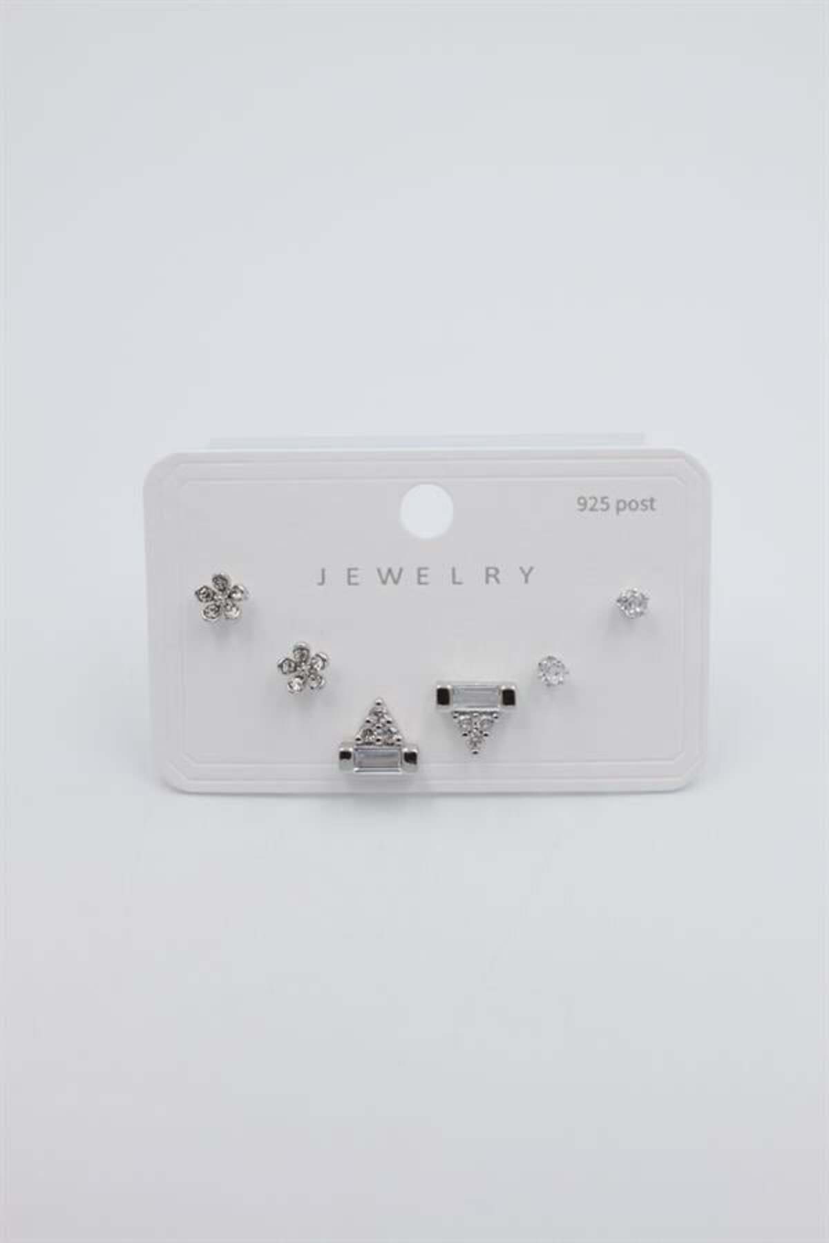 teknoparkx مجموعة متعددة من الأقراط - فضية