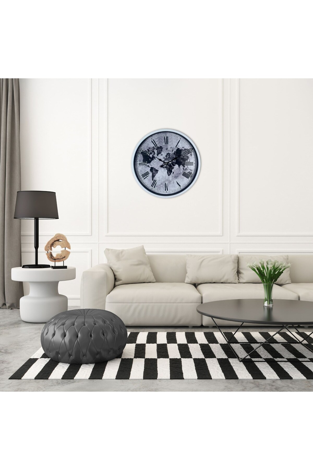 teknoparkx ساعة حائط بتصميم خريطة العالم باللون الأبيض مقاس 36 سم