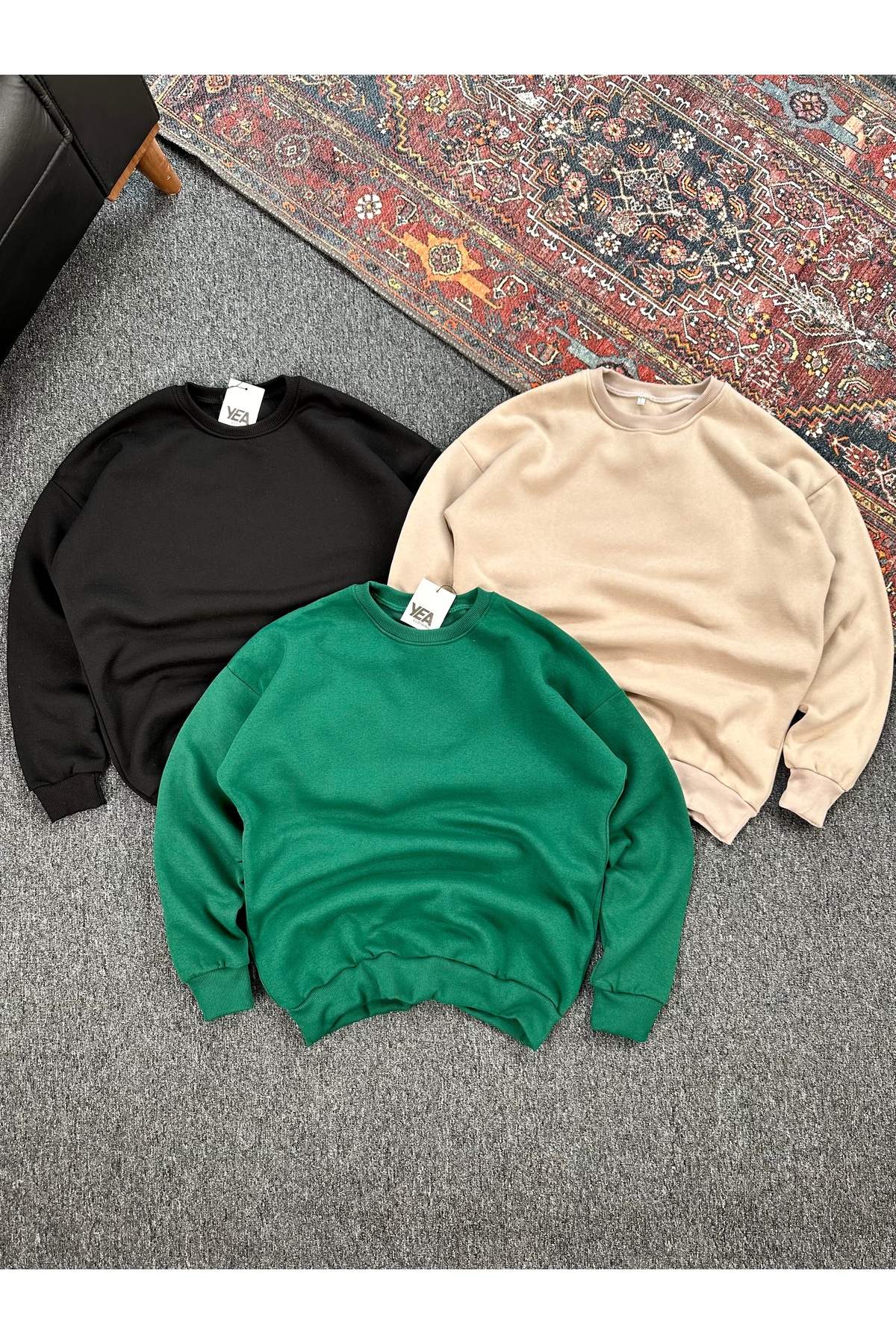 tetramoda سترة رياضية كبيرة الحجم بياقة دائرية وثلاثة خيوط بلون واحد مكونة من 3 قطع