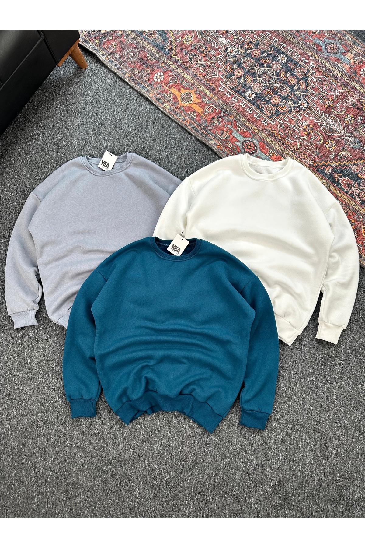 tetramoda سترة رياضية كبيرة الحجم بياقة دائرية وثلاثة خيوط بلون واحد مكونة من 3 قطع