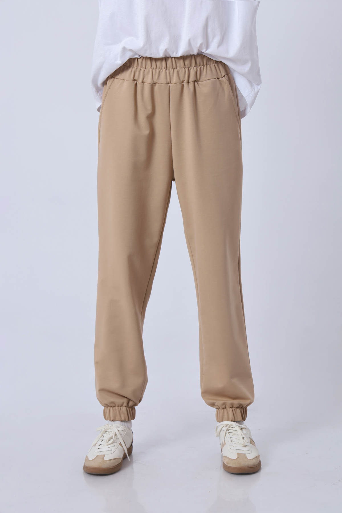 ميزات بنطال رياضي قماش قابل للتمدد بأرجل مطاطية من the basics