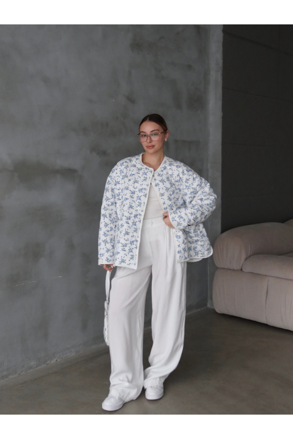 ميزات سترة كابيتون كبيرة الحجم مع حقيبة مزينة بالزهور من thelowely
