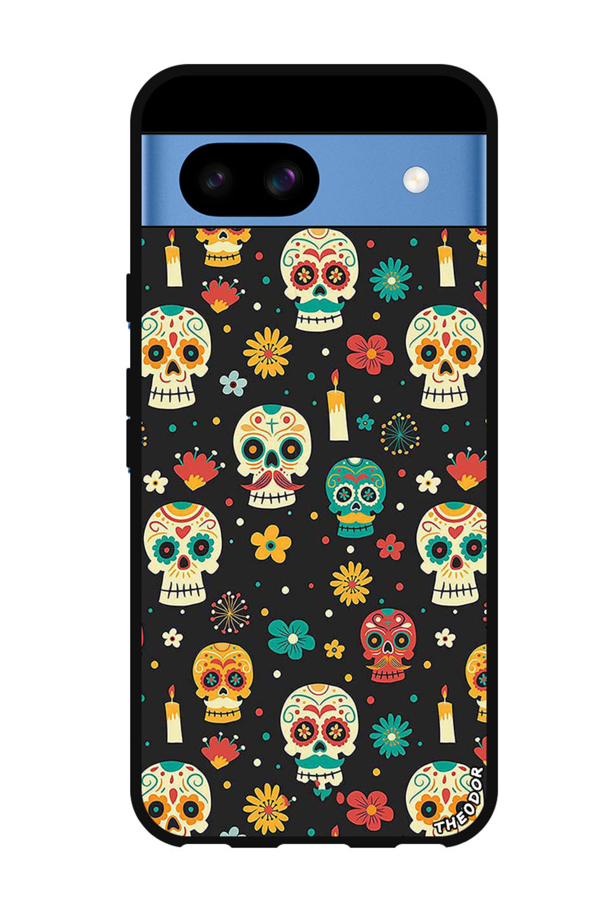 Theodor جراب واقٍ مضاد للخدش والصدمات لهاتف Google Pixel 8a بأنماط هيكل عظمي