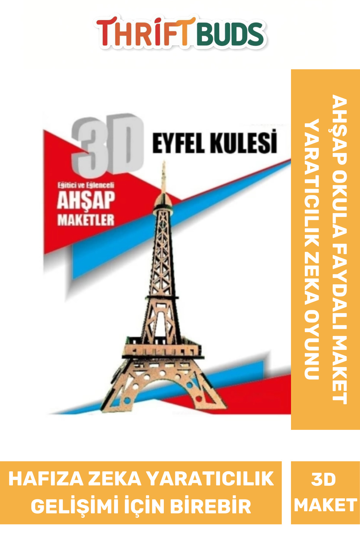 Thriftbuds إنتاج خاص 3 أحجام للذكاء التعليمي ومطور الإدراك والتعليم والألغاز واللعبة الخشبية النموذجية