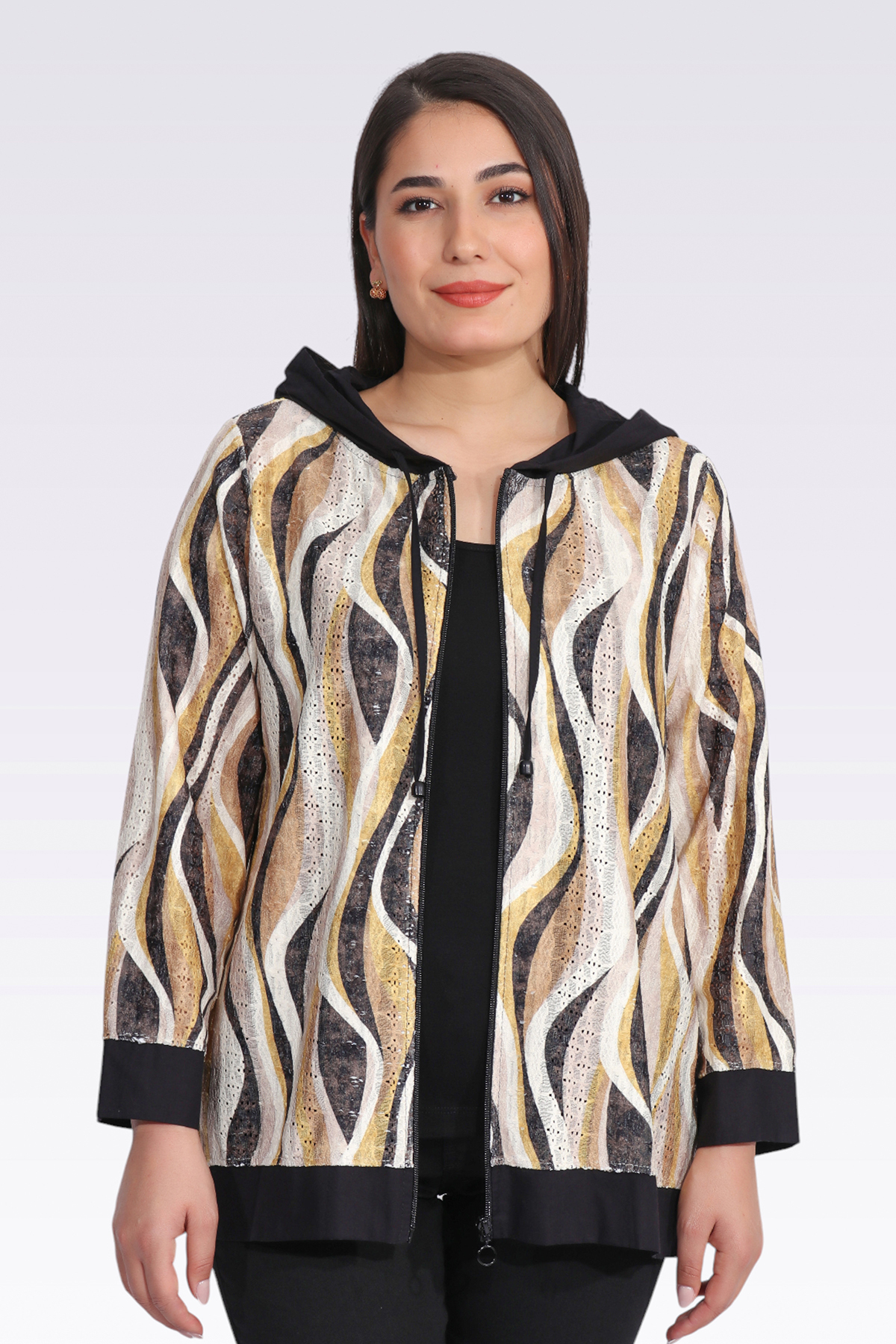 TOLGA SARAÇOĞLU 50286 سترة منقوشة من القماش الرقيق باللون الأسود
