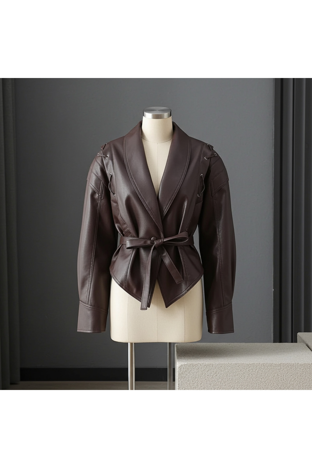 ميزات جاكيت جلد بني كلاسيكي من Tolou