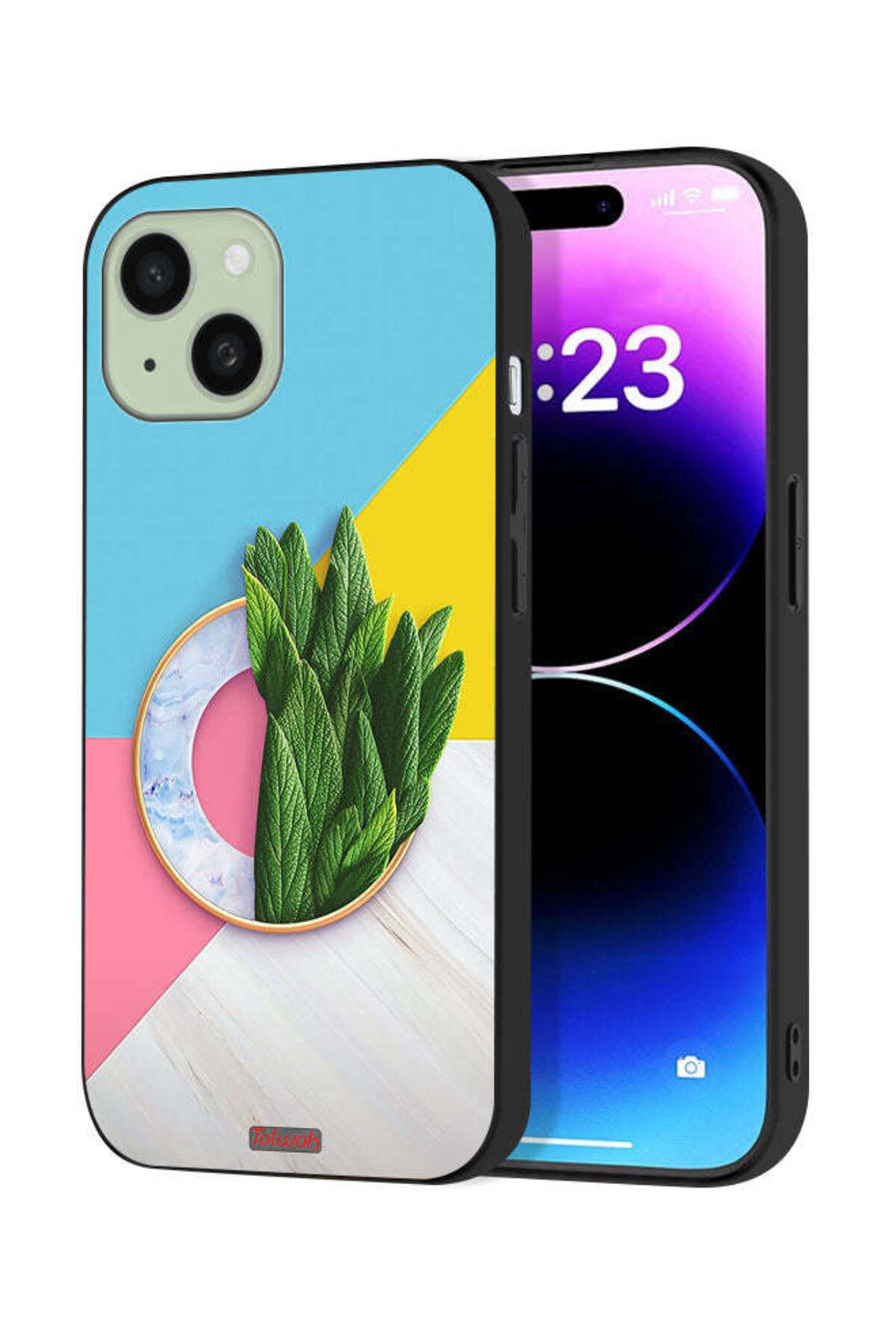 ميزات غطاء حماية لجهاز Apple iPhone 15 بنمط أوراق تجريدية من Tolwak