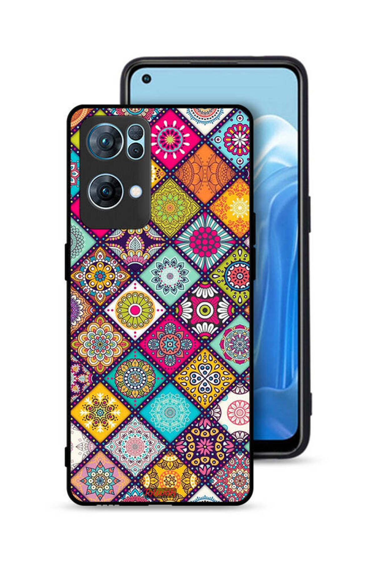 ميزات غطاء حماية لهاتف Oppo Reno7 Pro 5G بنمط مربعات ماندالا من Tolwak