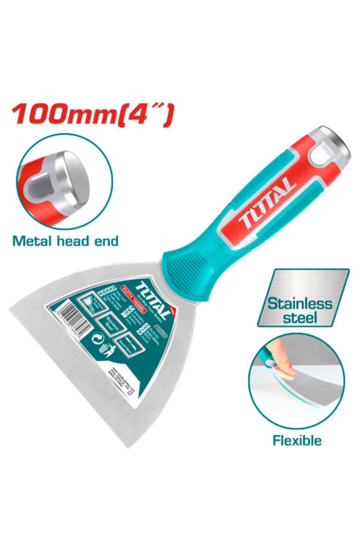 Total سكين معجون يد ربر 4"