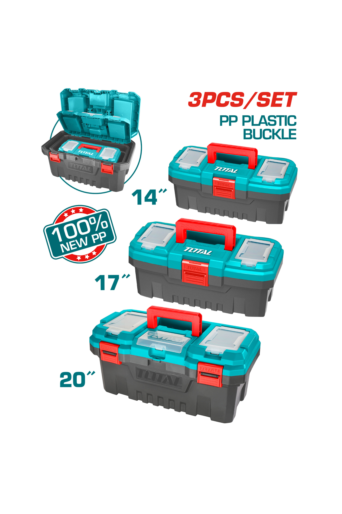 Total طقم صندوق عدة بلاستيك فارغ 14"&17"&20" 3pcs/set قفل بلاستيك