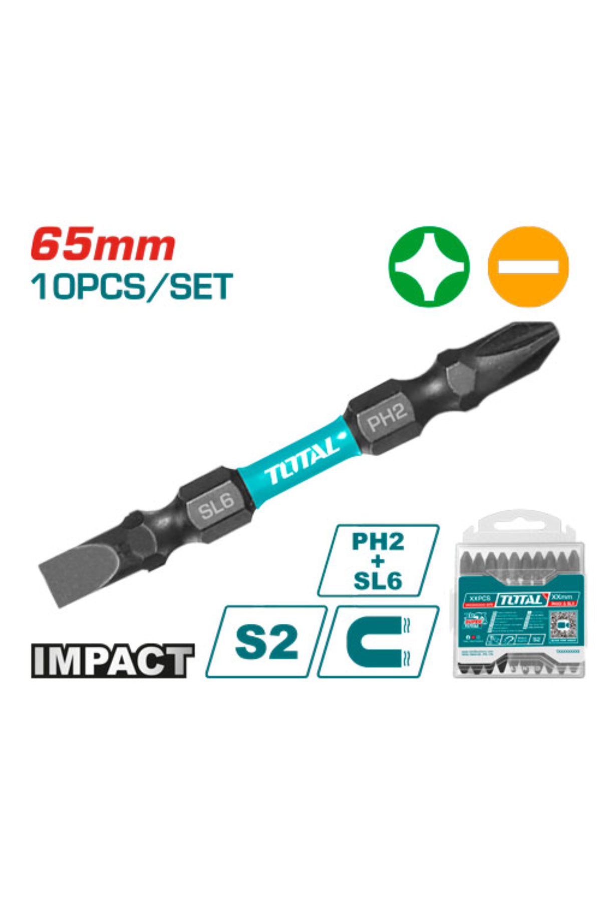 Total طقم لقمة راس مفك Ph2 Ph2 65mm 10pcs/set اسود -