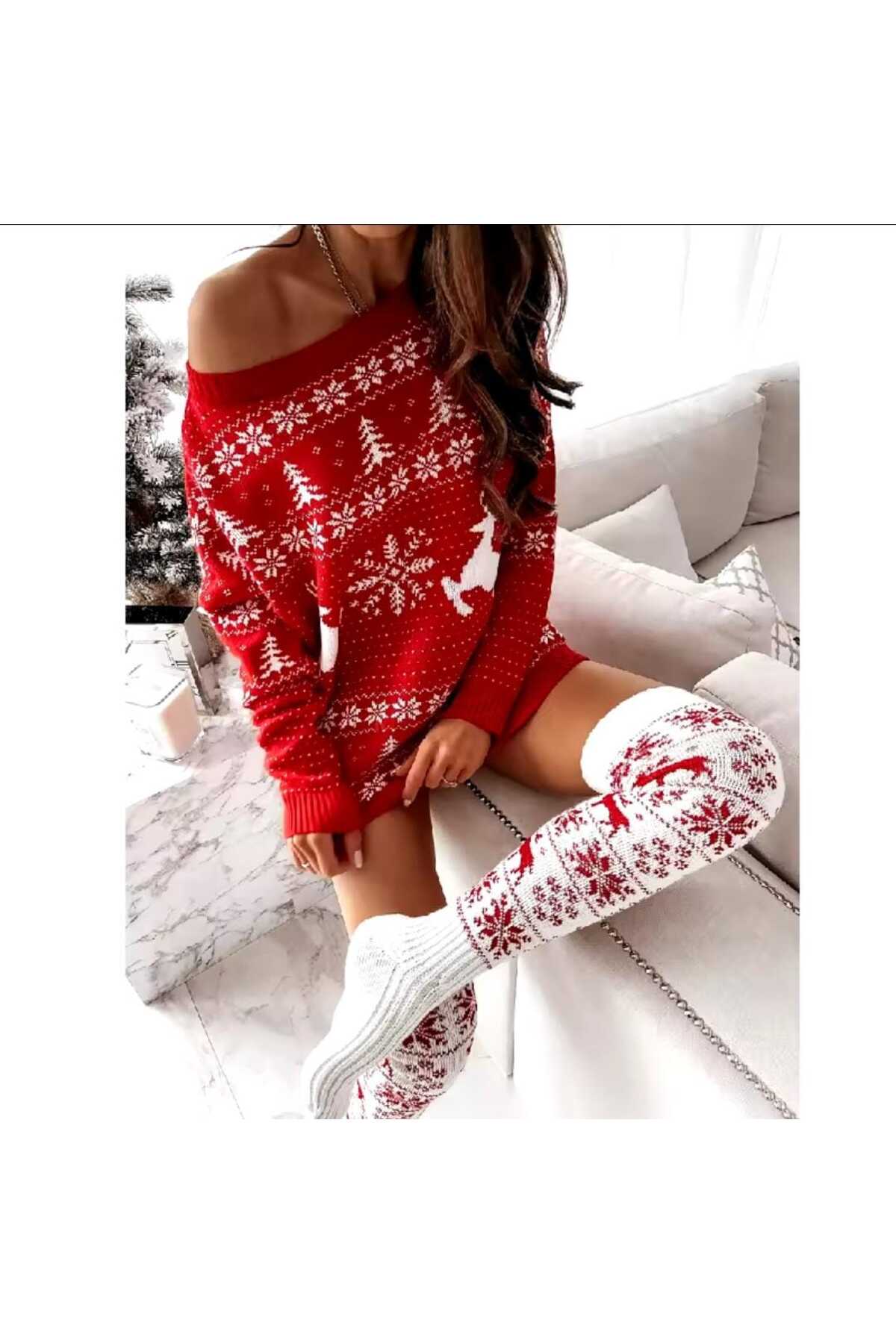 ميزات جوارب بنمط عيد الميلاد فوق الركبة من Touz Moda