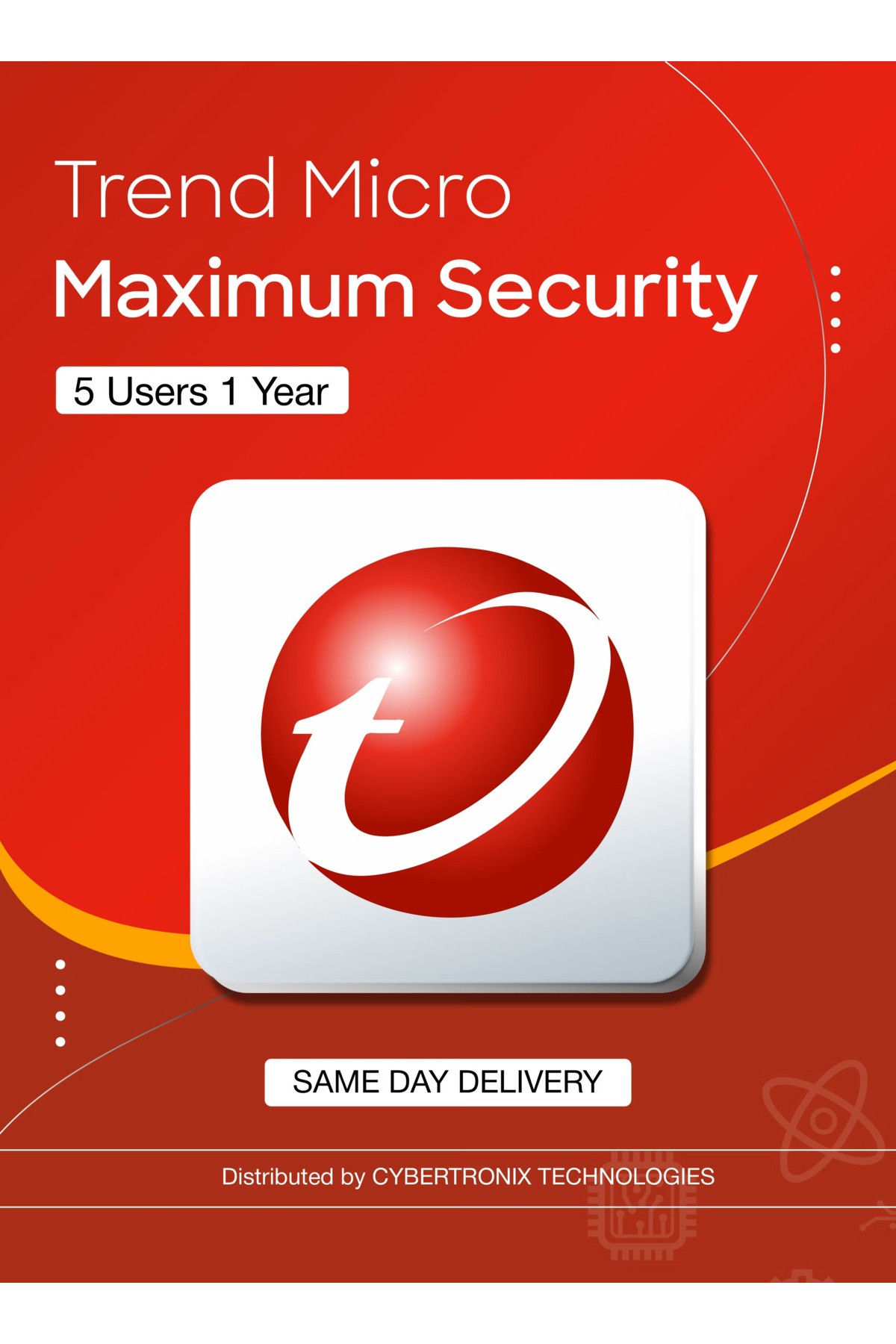 ميزات أقصى درجات الأمان | ٥ مستخدمين لمدة عام | ترخيص رقمي | توصيل في نفس اليوم من TREND MICRO