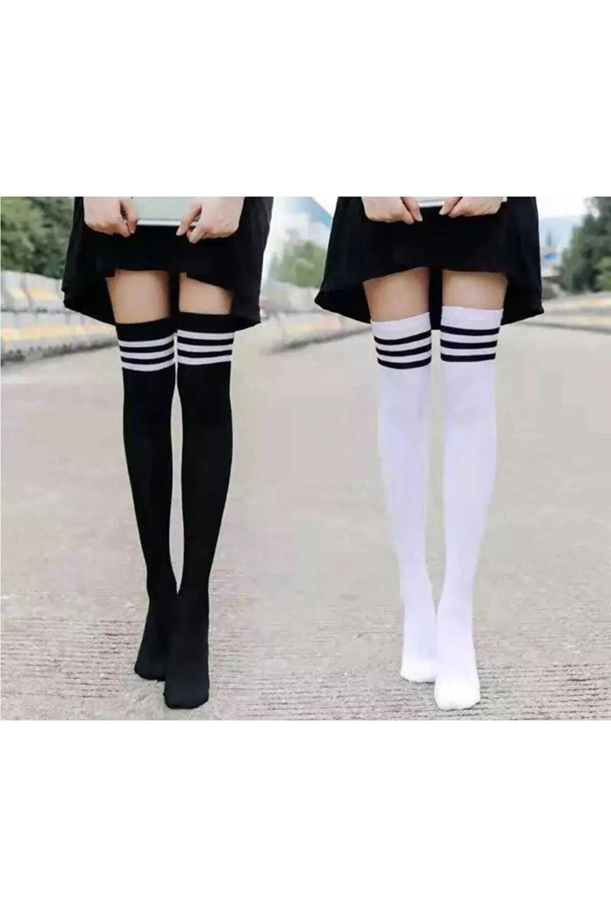 Trenderrs جوارب قطنية مزدوجة فوق الركبة