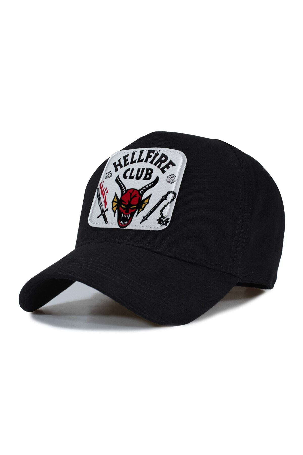 ميزات قبعة موديل Hellfire - رقعة جلدية قابلة للاستبدال - قطن - للجنسين - أسود من Trucker