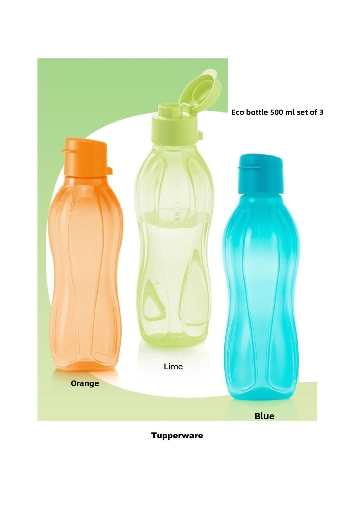 Tupperware زجاجة مياه Eco سعة 500 مل مكونة من 3 قطع - غطاء عملي