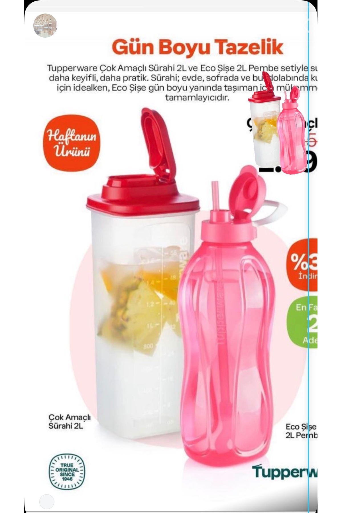 ميزات إبريق متعدد الاستخدامات سعة 2 لتر وقارورة سعة 2 لتر مع شفاطة من Tupperware