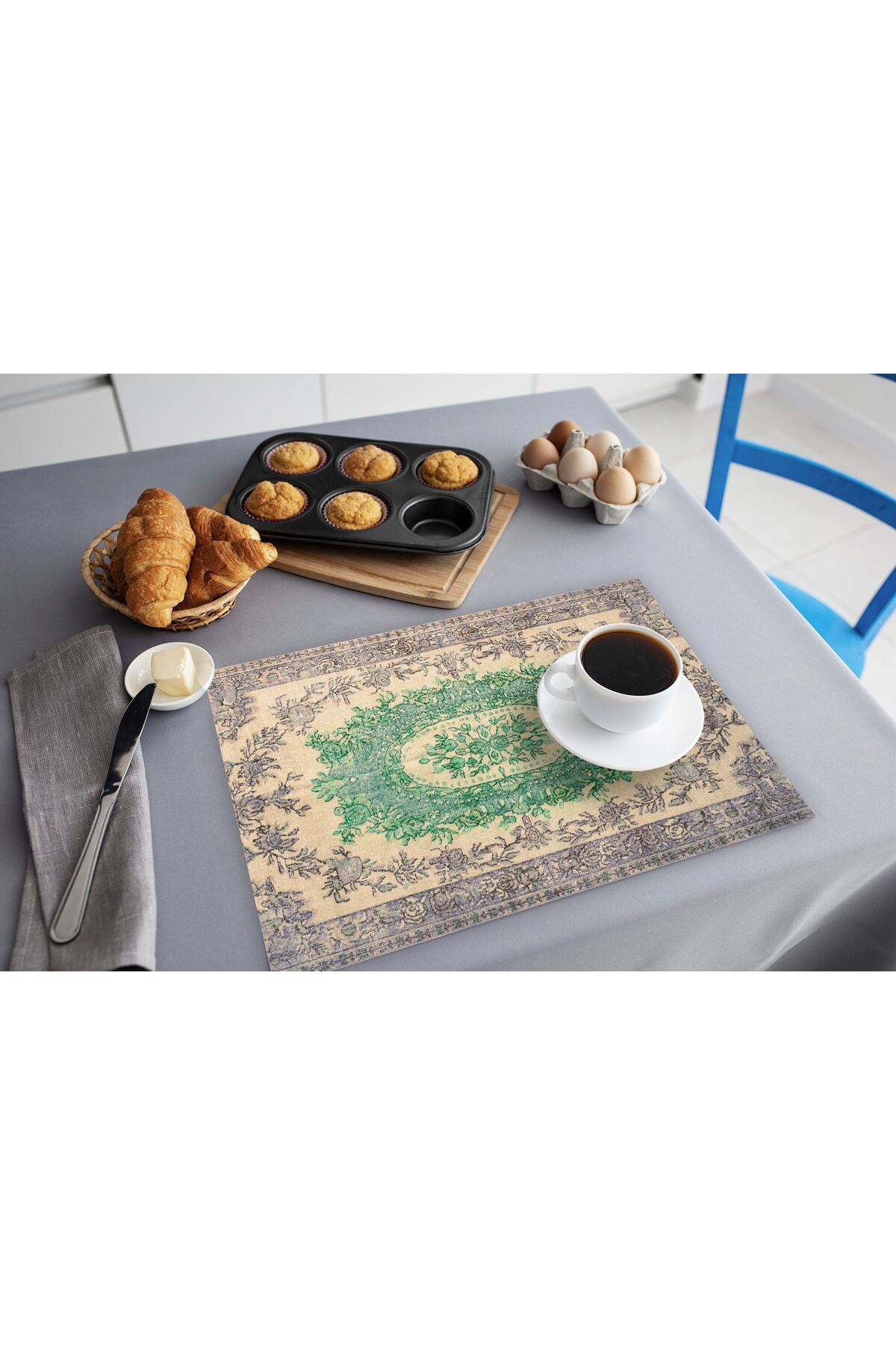 ميزات خدمة أدوات المائدة البوليستر المزخرفة بالحيوية من TURKISHRUG KINGDOM