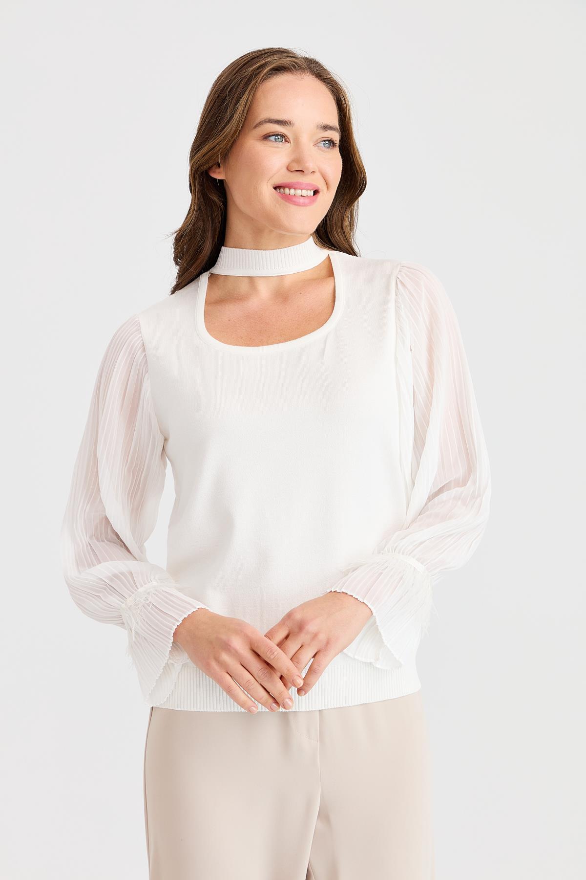 ميزات بلوزة بأكمام مطوية على شكل عظمة من Two Mail