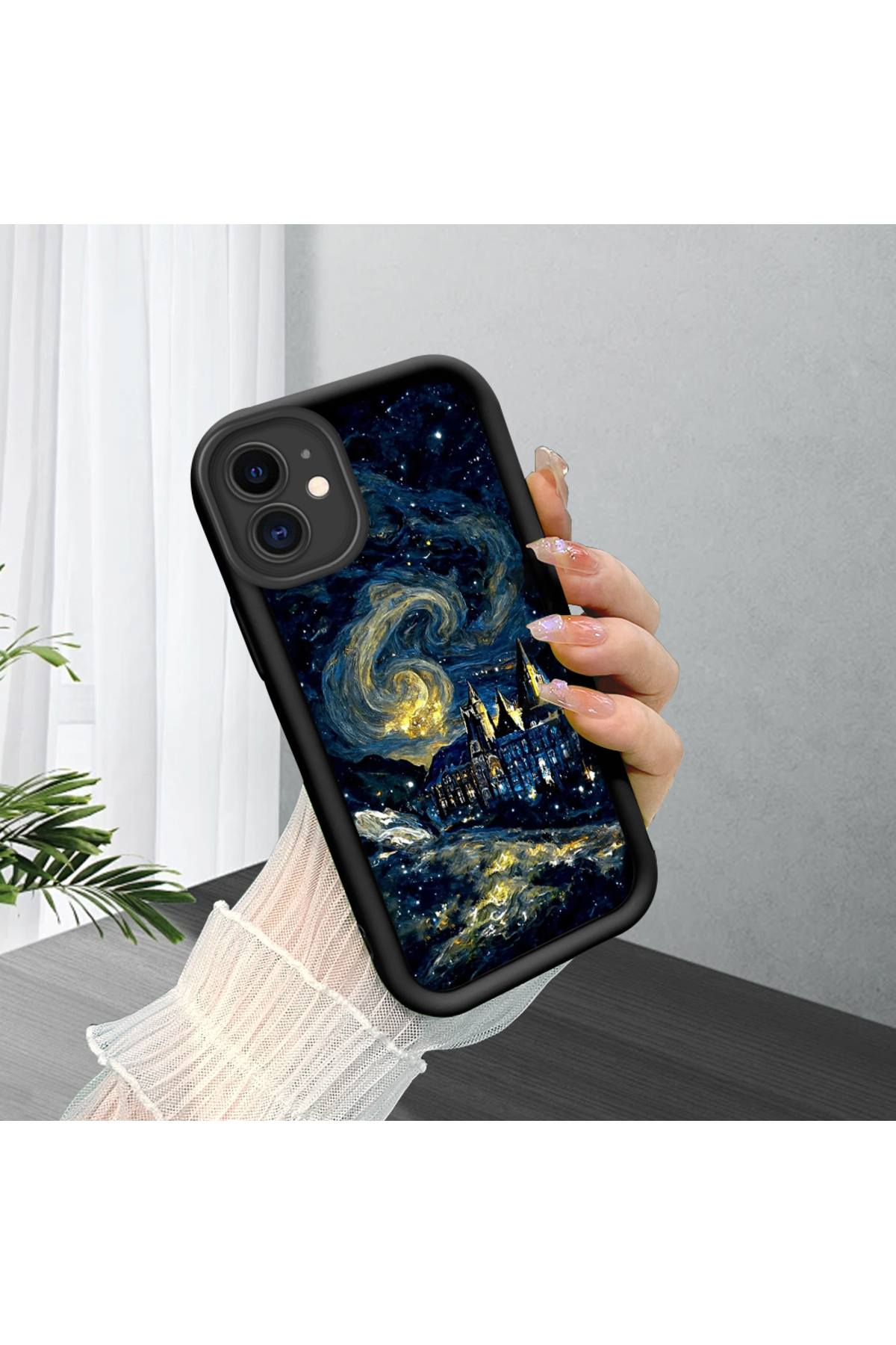 ucuc حافظة سيليكون سوداء بنمط السماء الساحرة المتوافقة مع هاتف iPhone 12
