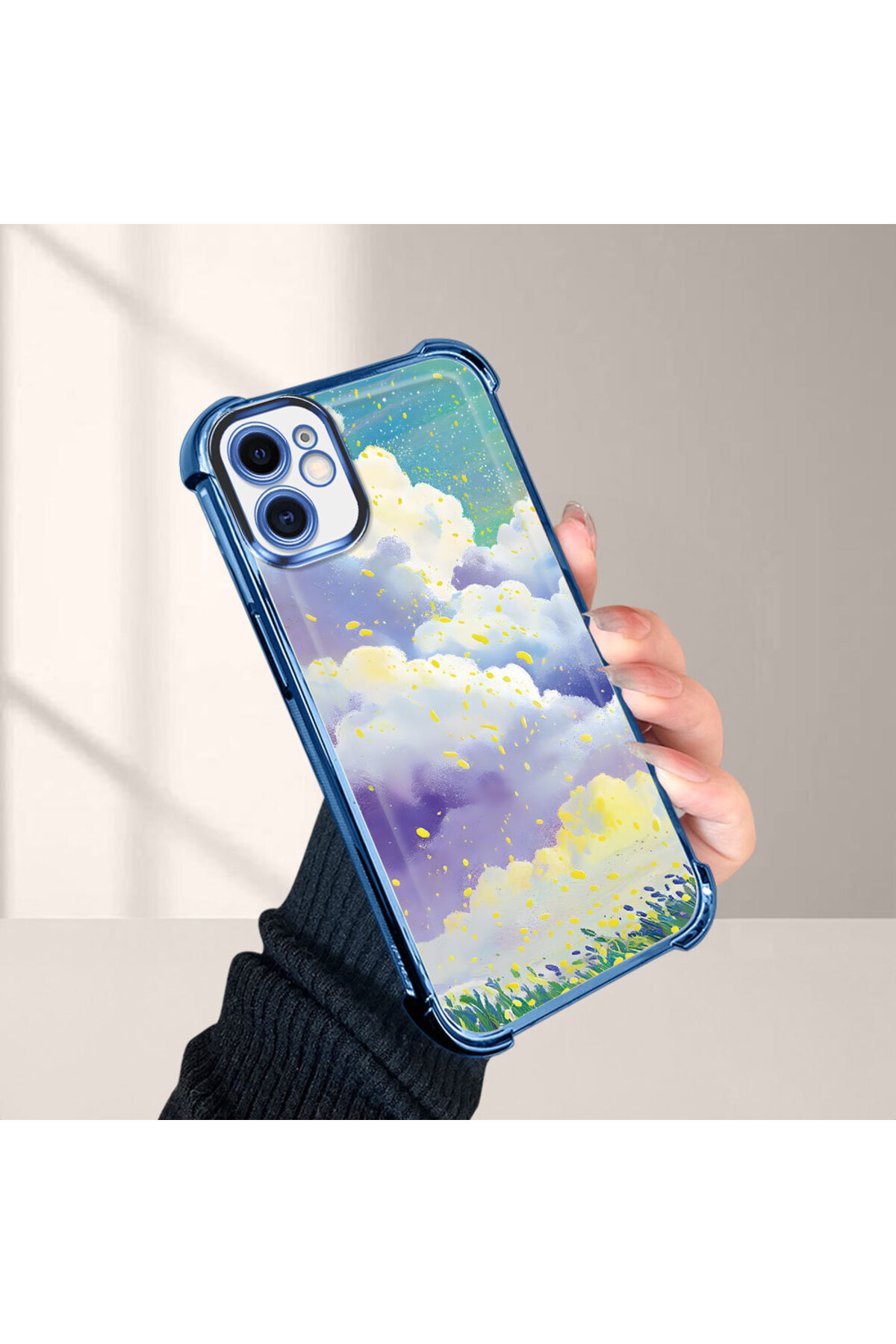 ميزات حافظة واقية من السيليكون الشفاف المتوافقة مع هاتف iPhone 11، أنماط سحابية ملونة من ucuc