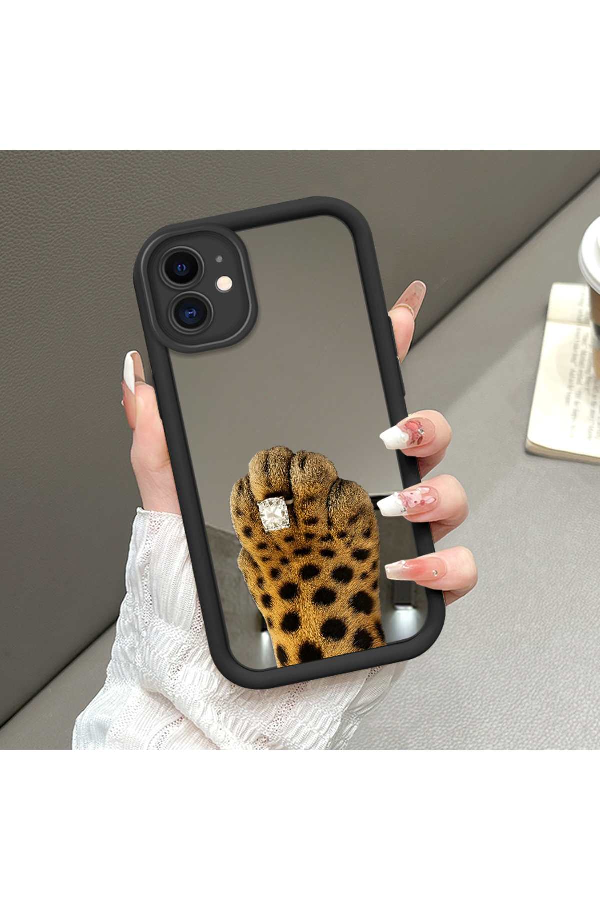 ucuc حافظة سيليكون سوداء مقاومة للسقوط متوافقة مع هاتف iPhone 12 بأنماط الفهد ذات الوجه المرآة