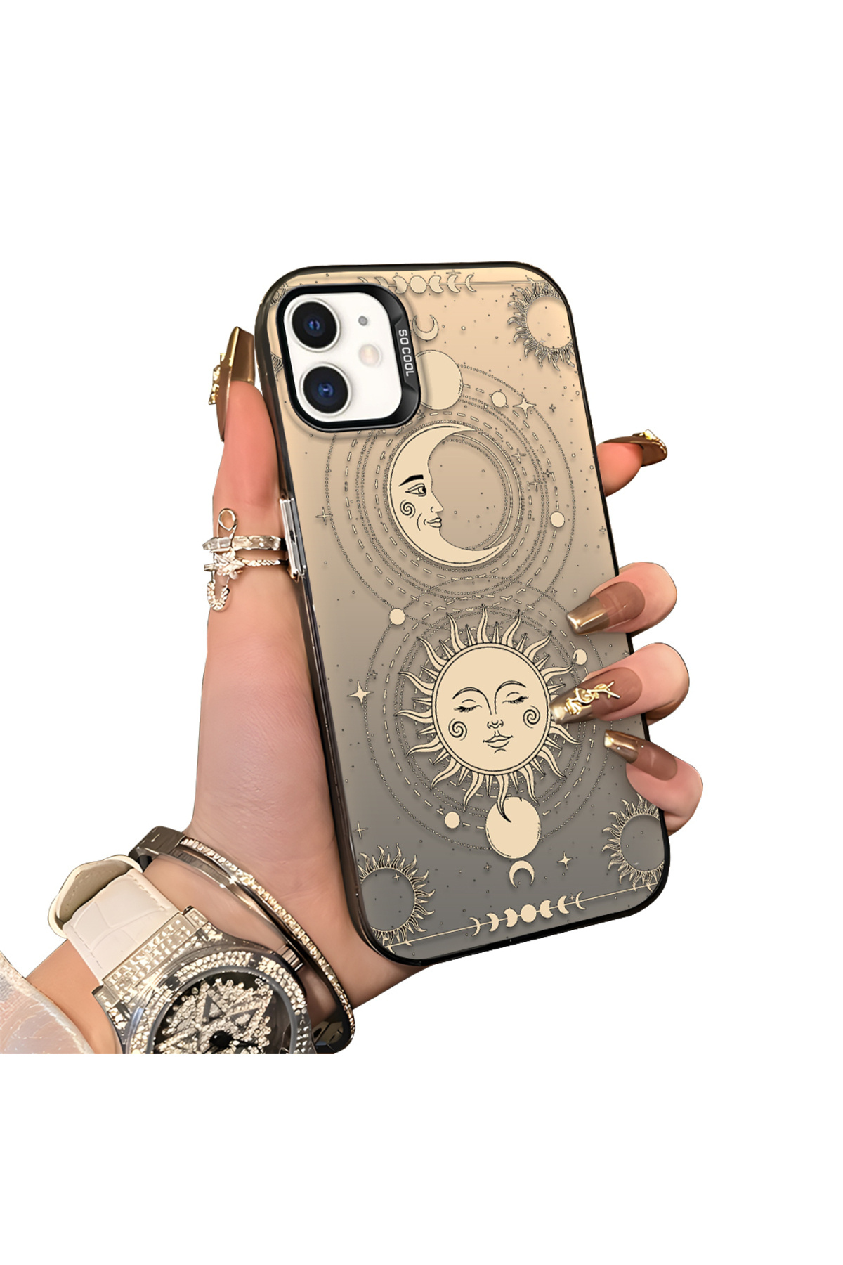 ميزات حافظة مضادة للسقوط من السيليكون المتوافقة مع هاتف iPhone 12، بنمط القمر من ucuc