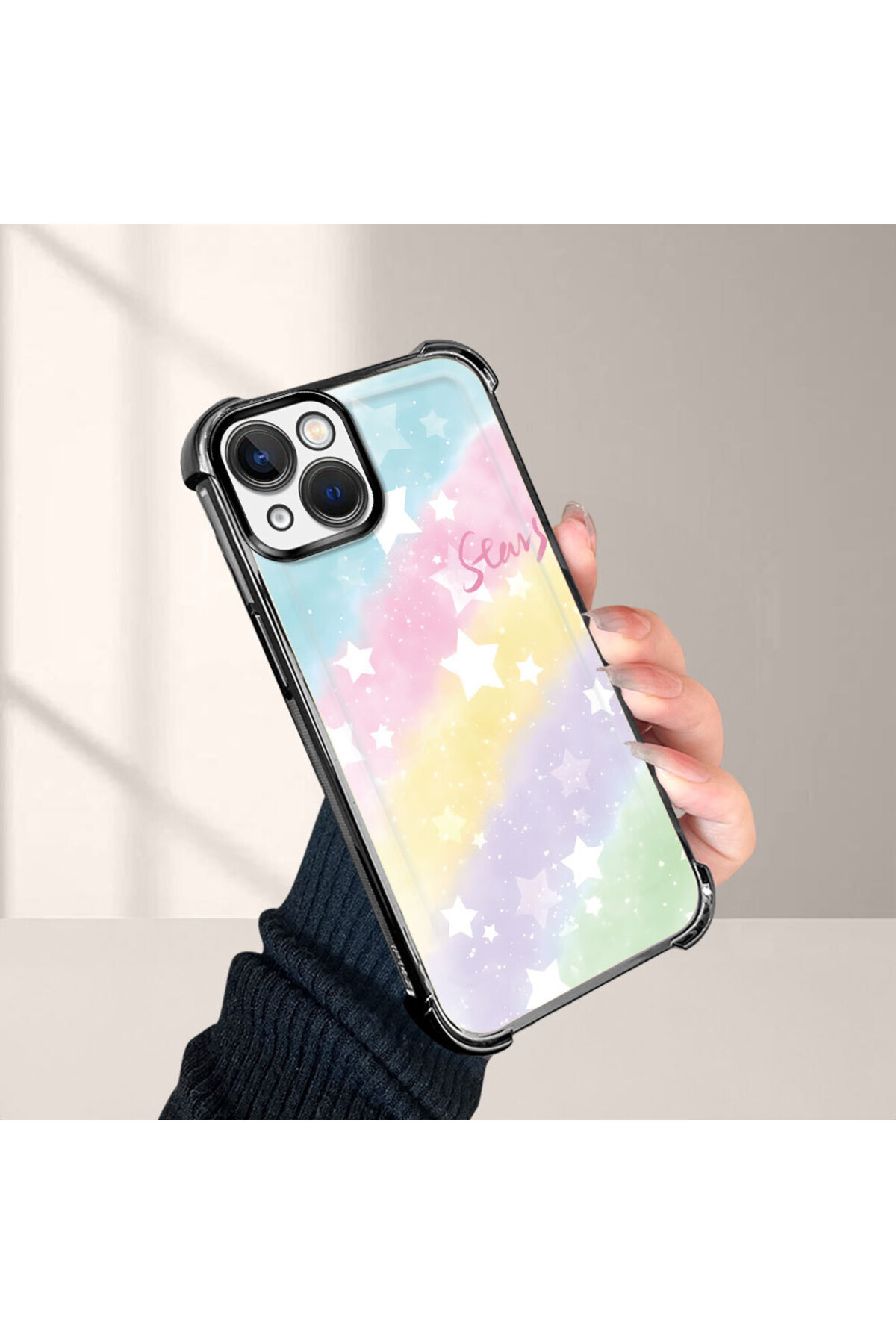 ميزات حافظة حماية من السيليكون الشفاف المتوافقة مع iPhone 13 بأنماط قوس قزح من ucuc
