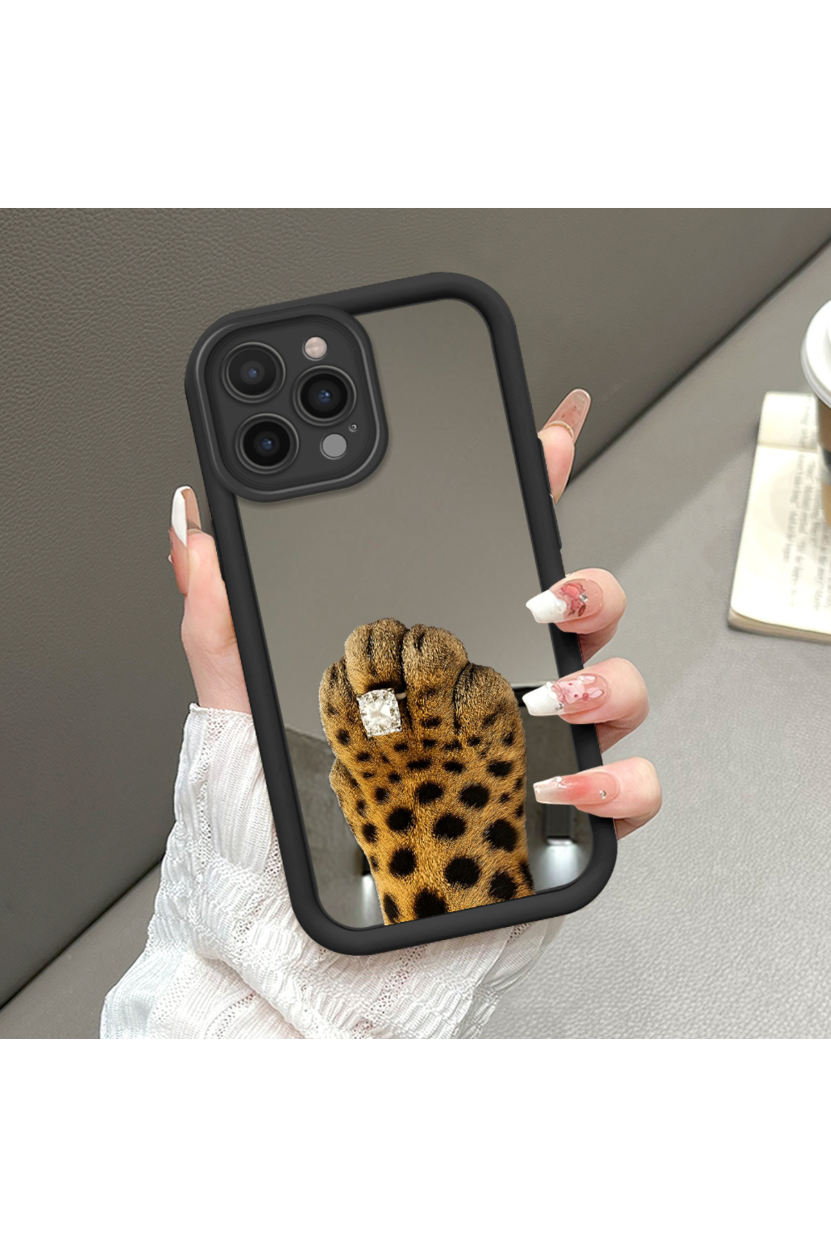 ميزات حافظة سيليكون سوداء مقاومة للسقوط متوافقة مع هاتف iPhone 14 Pro بأنماط مرآة ونمط الفهد من ucuc
