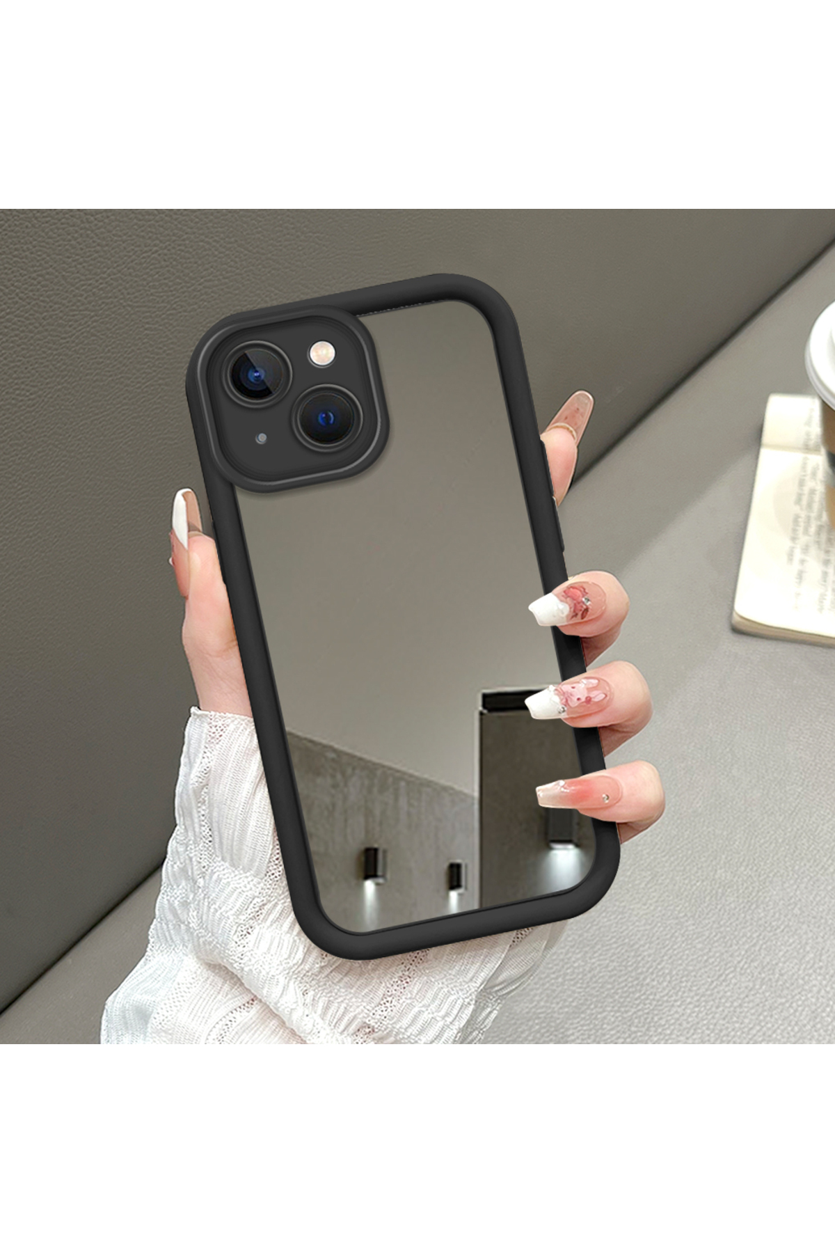 ميزات حافظة سيليكون سوداء مقاومة للسقوط متوافقة مع آيفون 15 مع وجه مرآة من ucuc