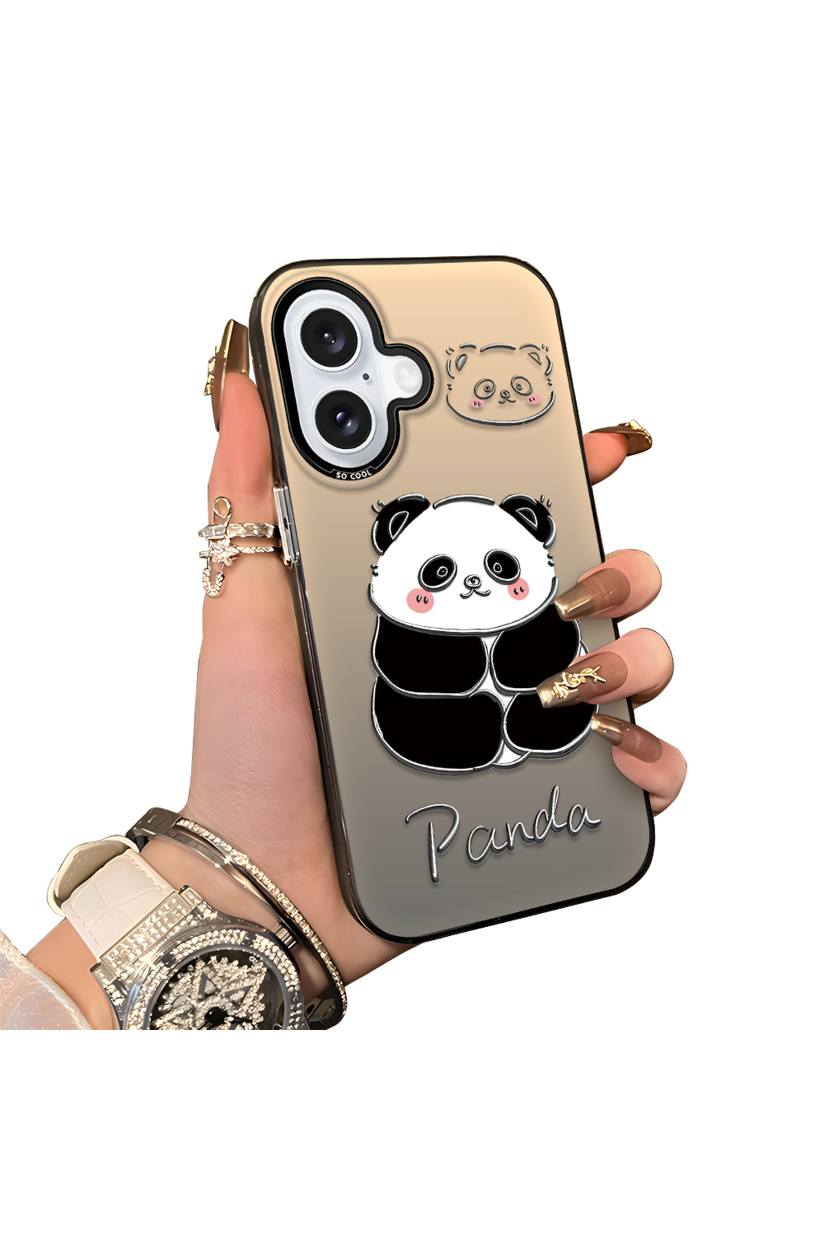 ucuc غطاء سيليكون متوافق مع آيفون 16 بنمط الباندا اللطيف، حافظة مقاومة للصدمات