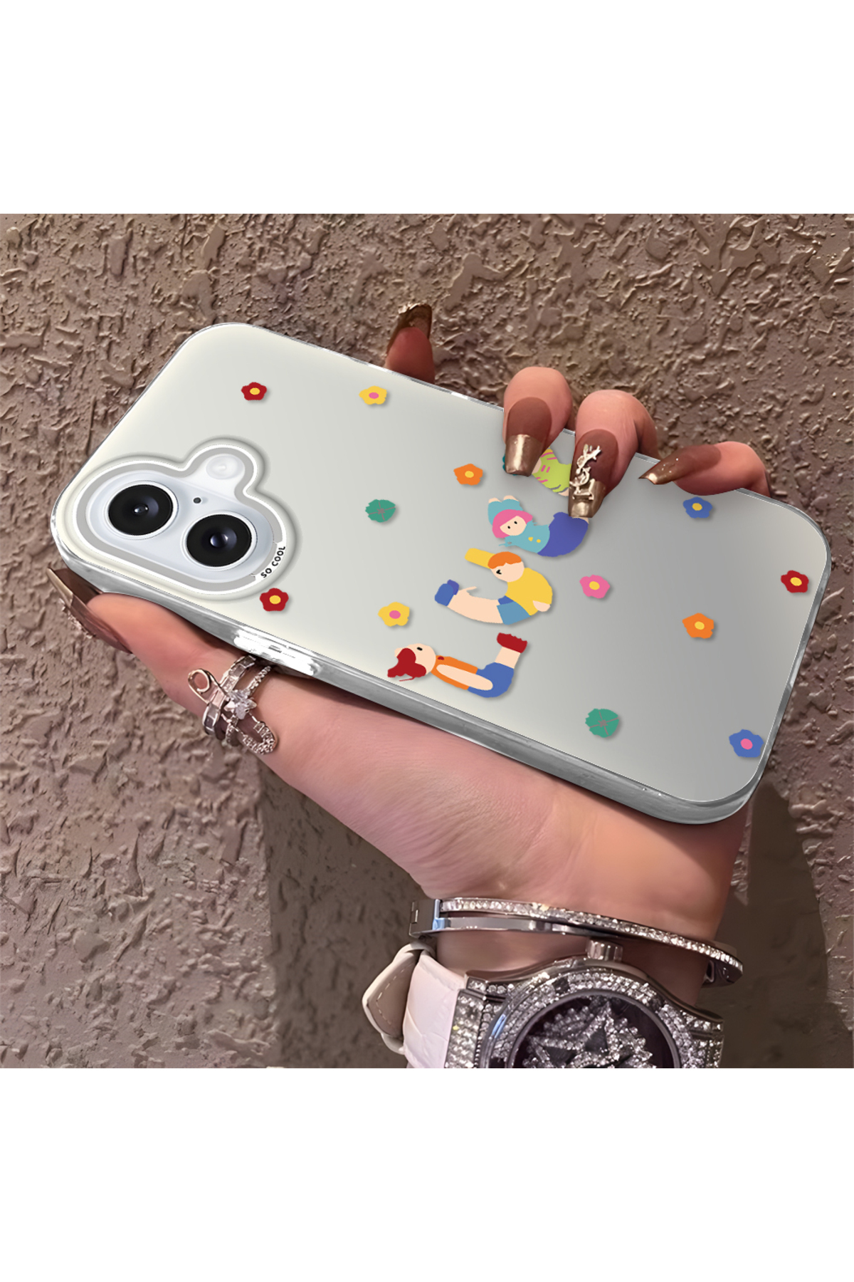 ucuc حافظة مضادة للسقوط من السيليكون المتوافقة مع هاتف iPhone 16، بنمط ممتع