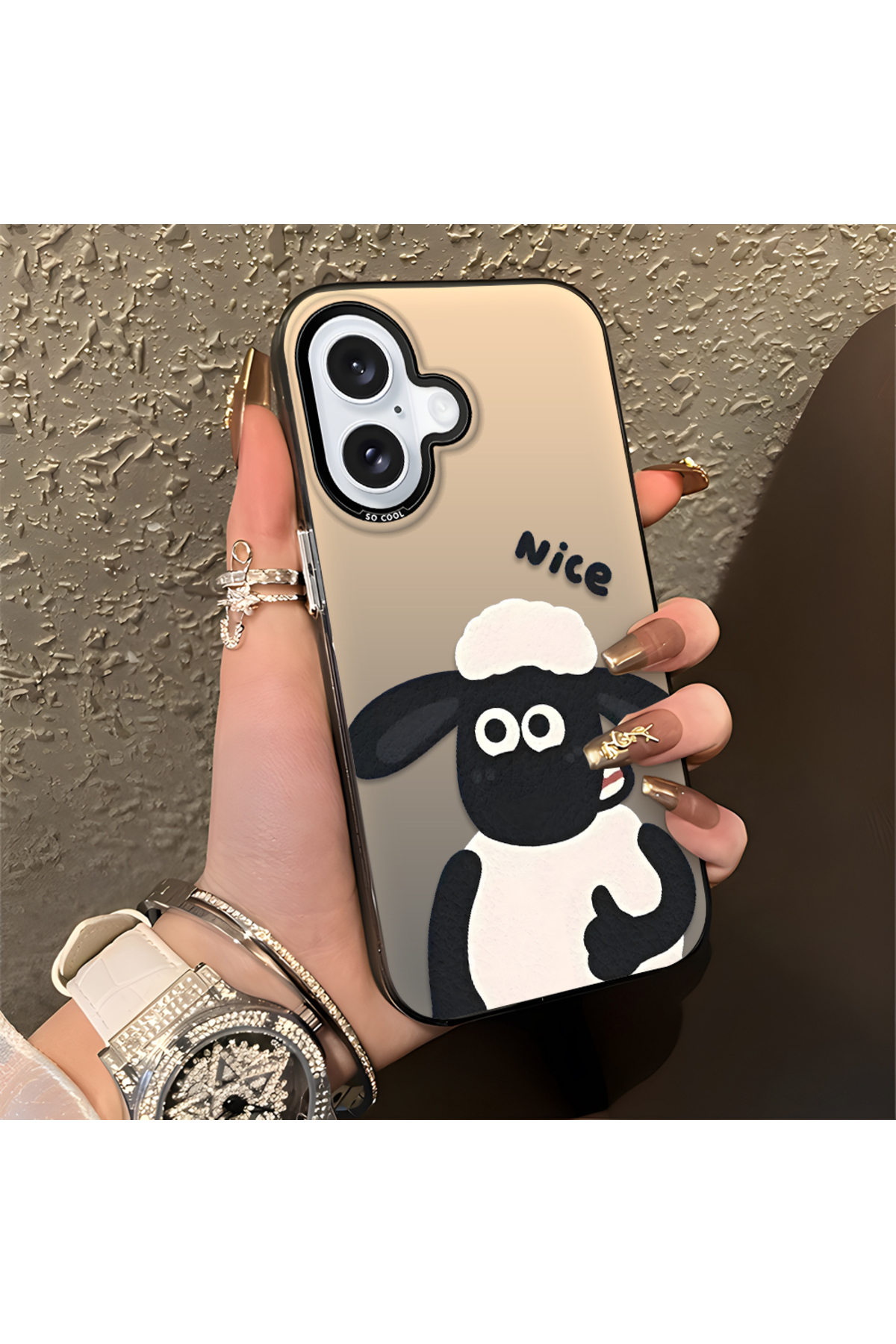 ميزات غطاء سيليكون متوافق مع آيفون 16 بحافة صلبة ومضاد للسقوط بنمط الخروف من ucuc