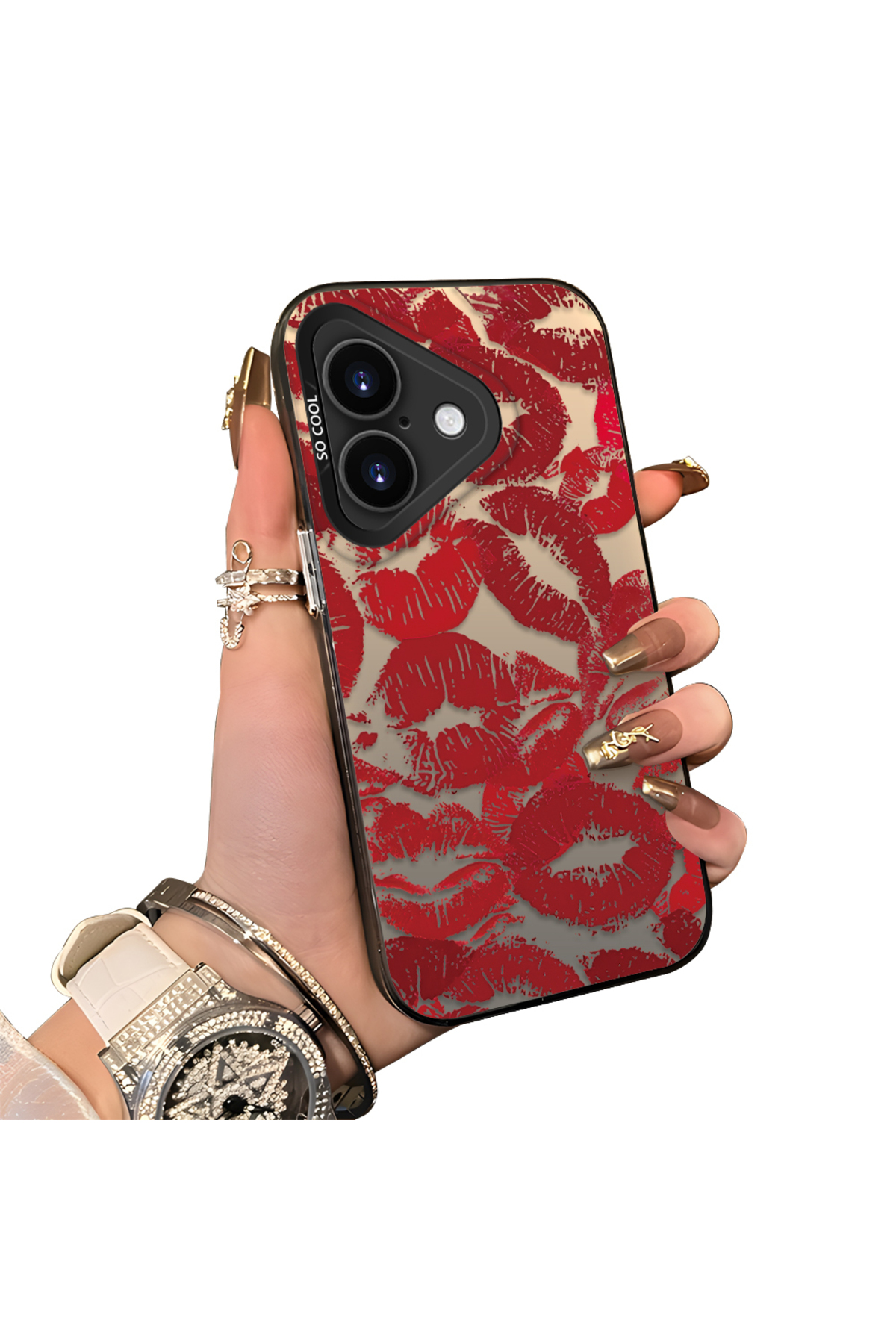 ميزات غطاء سيليكون متوافق مع آيفون 16 بحافة صلبة وظهر مضاد للسقوط مع نمط الشفاه من ucuc