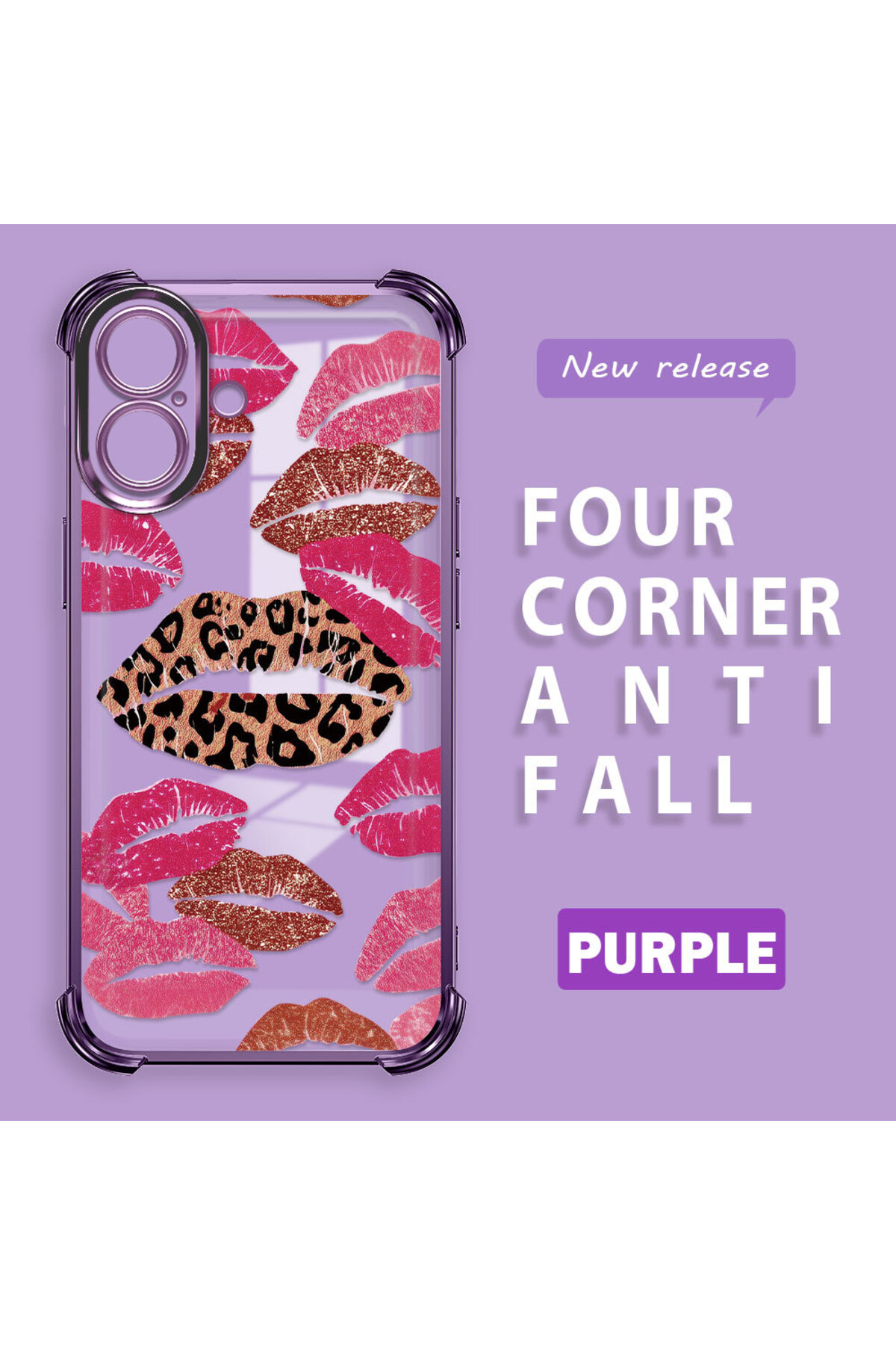 ميزات حافظة واقية من السيليكون الشفاف المتوافقة مع iPhone 16 بأنماط الشفاه من ucuc