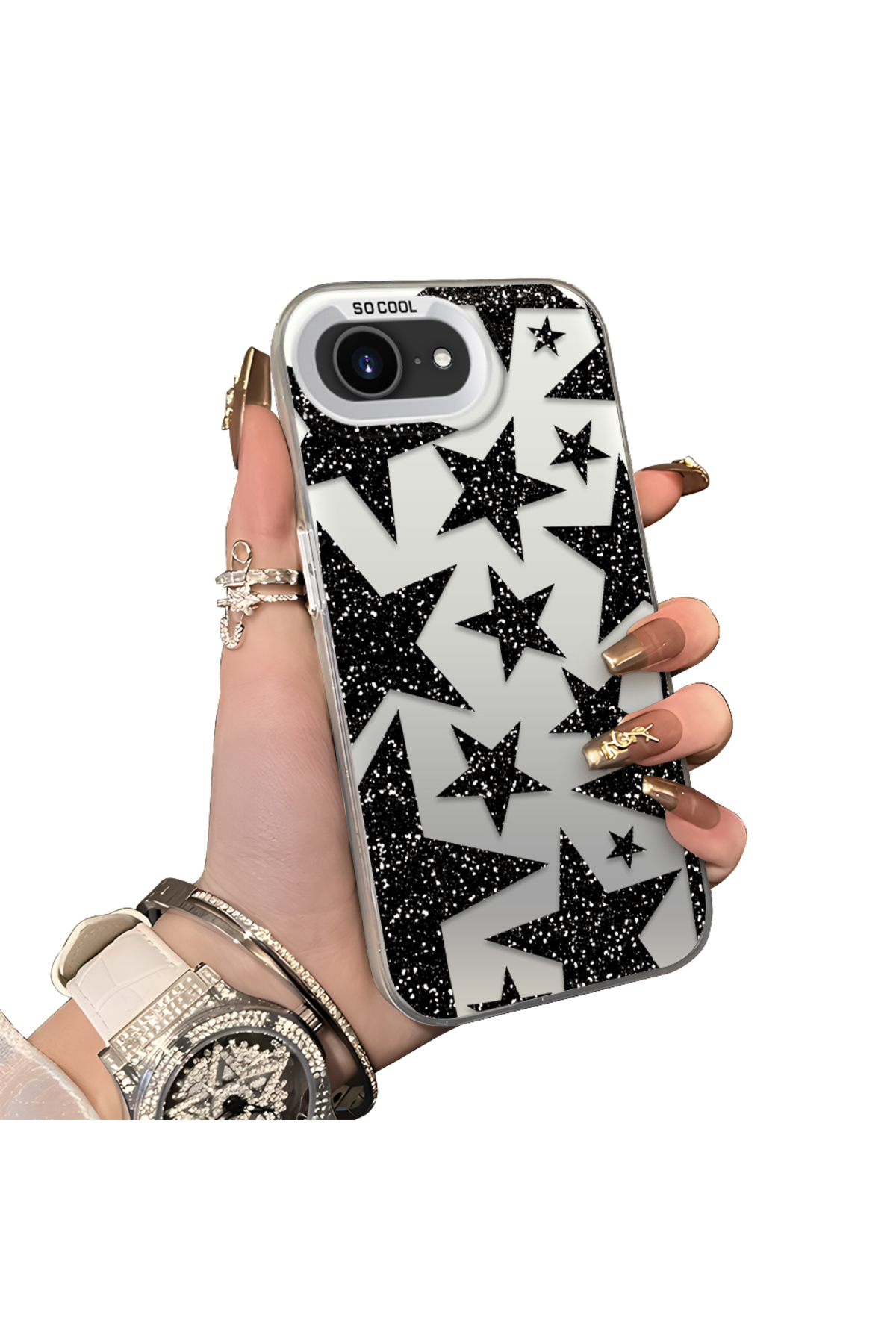 ميزات حافظة سيليكون متوافقة مع هاتف iPhone 16E ذات حافة صلبة ومضادة للسقوط بأنماط نجمية من ucuc