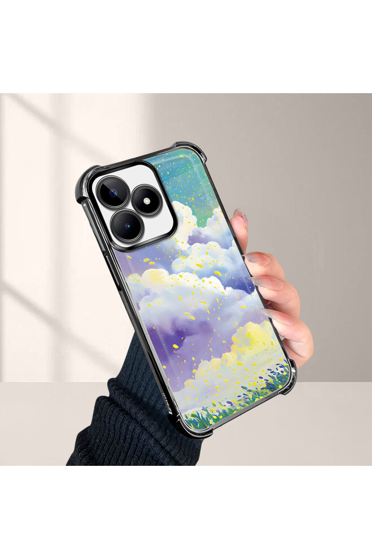 ميزات حافظة واقية من السيليكون الشفاف المتوافقة مع هاتف Realme C53، أنماط سحابية ملونة من ucuc