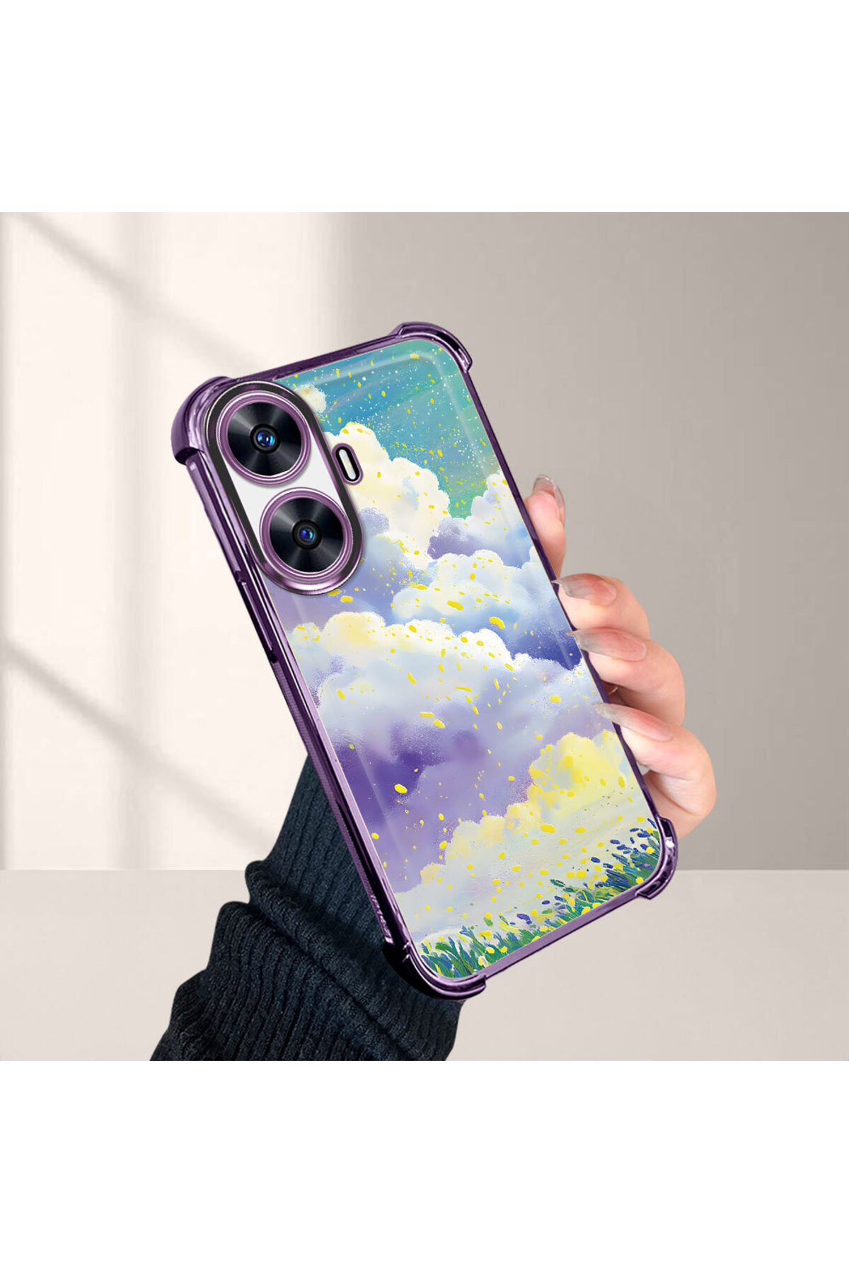ميزات حافظة حماية من السيليكون الشفاف المتوافقة مع هاتف Realme C55، أنماط سحابية ملونة من ucuc