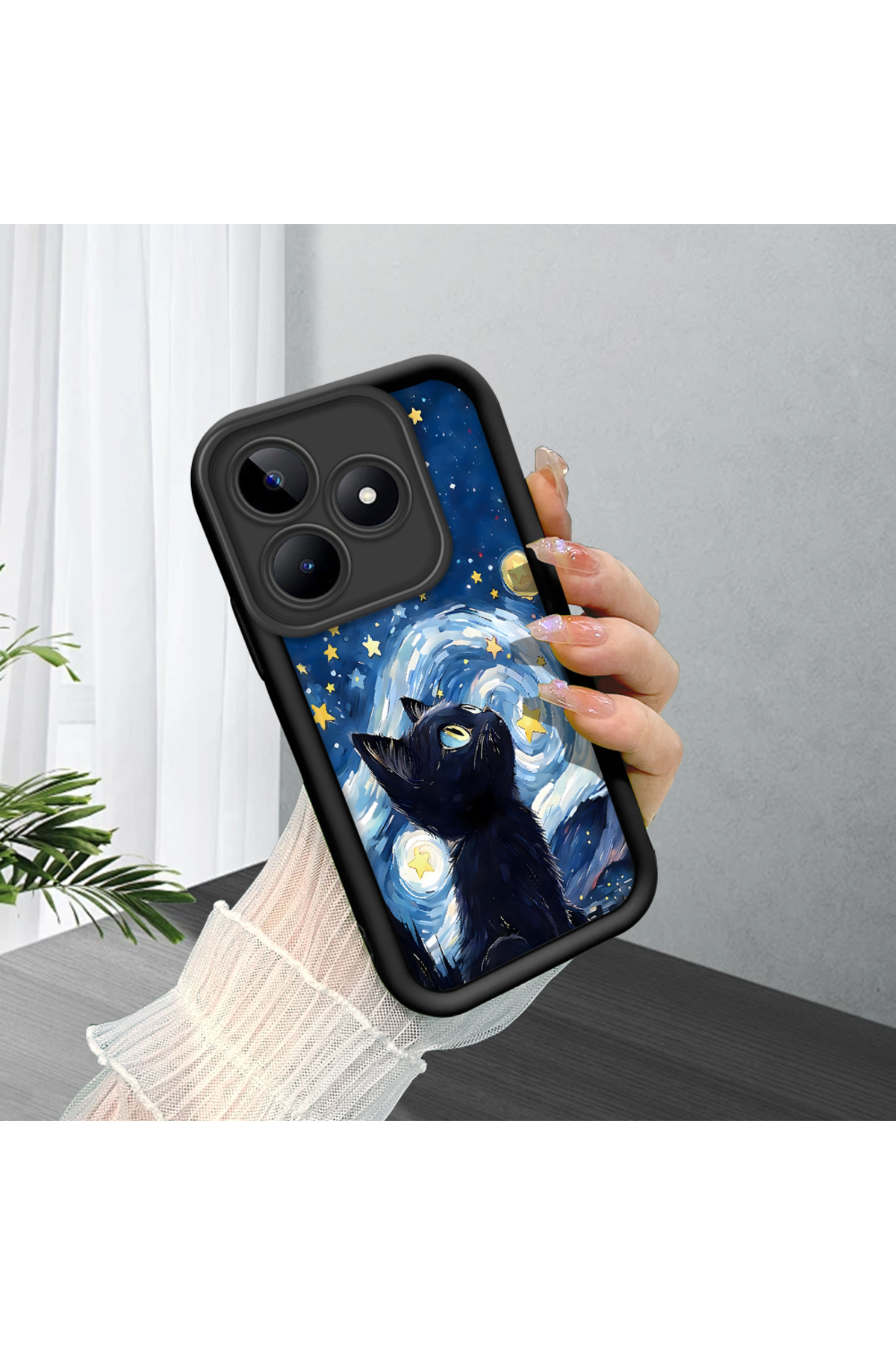 ميزات حافظة متوافقة مع هاتف Realme Note 50 مصنوعة من مادة السيليكون المقاومة للصدمات باللون الأسود بنمط قطة من ucuc